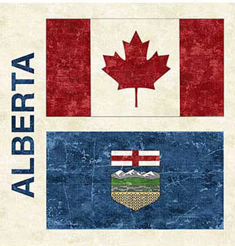 Alberta Provincial Fabric Panel 42"x16", Alberta Flag, Canada Flag, Northcott Fabric