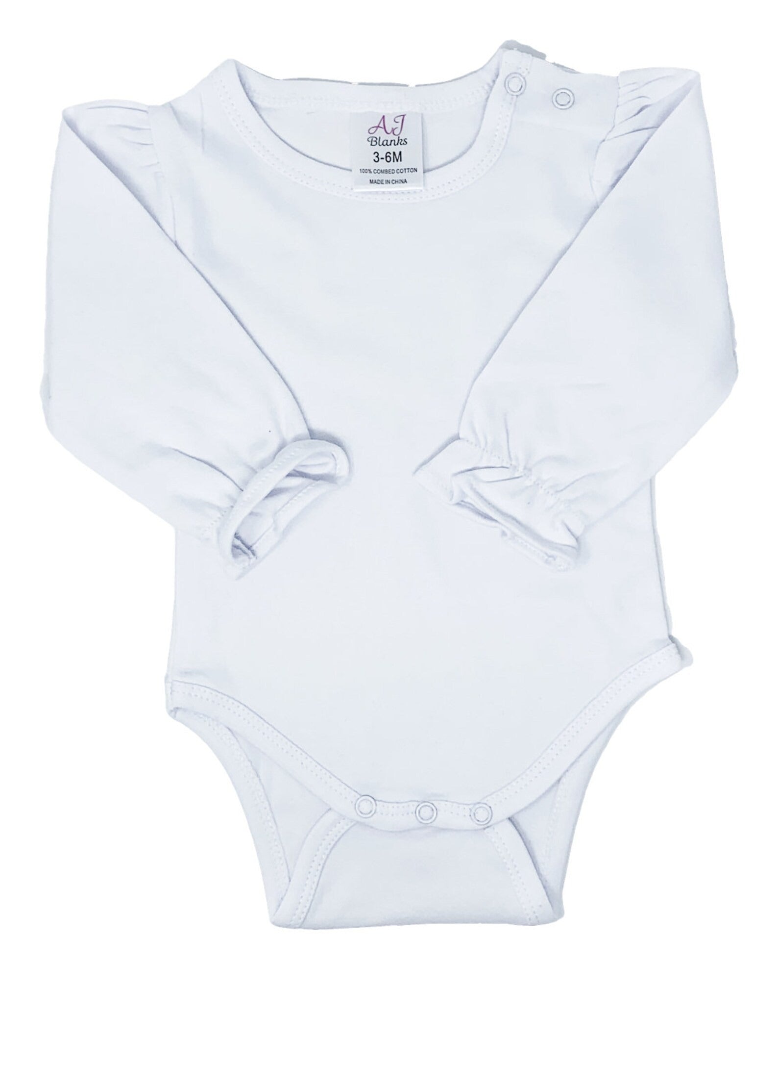 I used a puffed sleeve shirt for this design pictured. Puffed Sleeve Bodysuits are available up to available up to size 2T. Size 2T and up are puffed T-shirts which are shown in the chart provided.