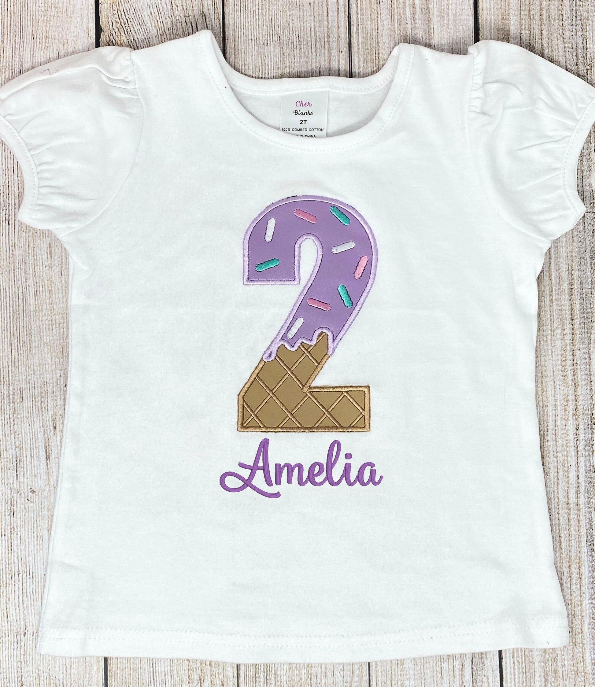 ANY Age ANY Size Ice Cream Shirt, Girls Ice Cream Party, 2nd Birthday Party, Smash Cake Shirt