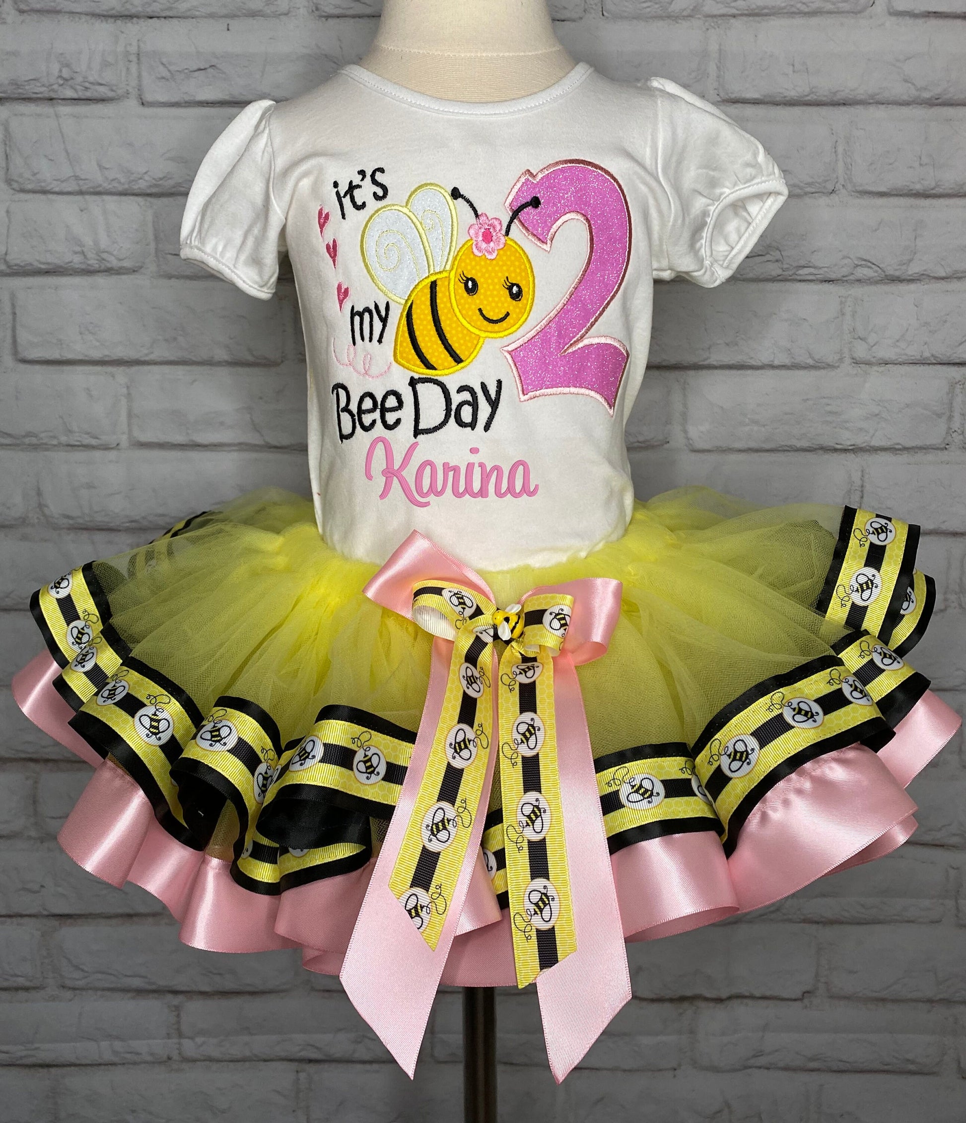 Its My Bee Day Tutu Set, Bee Birthday Tutu Set, 2nd Birthday Bee Shirt Hairbow Tutu, Birthday Party Dress Skirt Shirt, ANY AGE