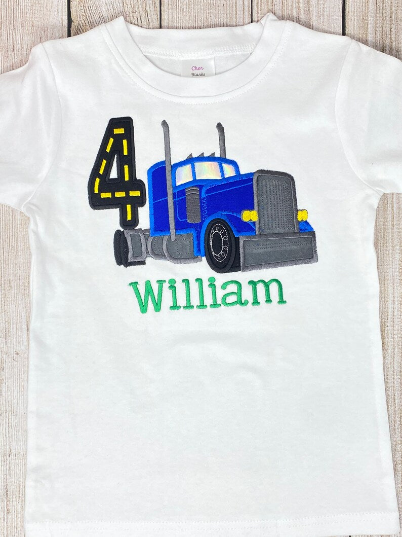 ANY Age ANY Size Semi-truck Birthday Shirt, Blue Semi Birthday Party, Boys Truck Birthday