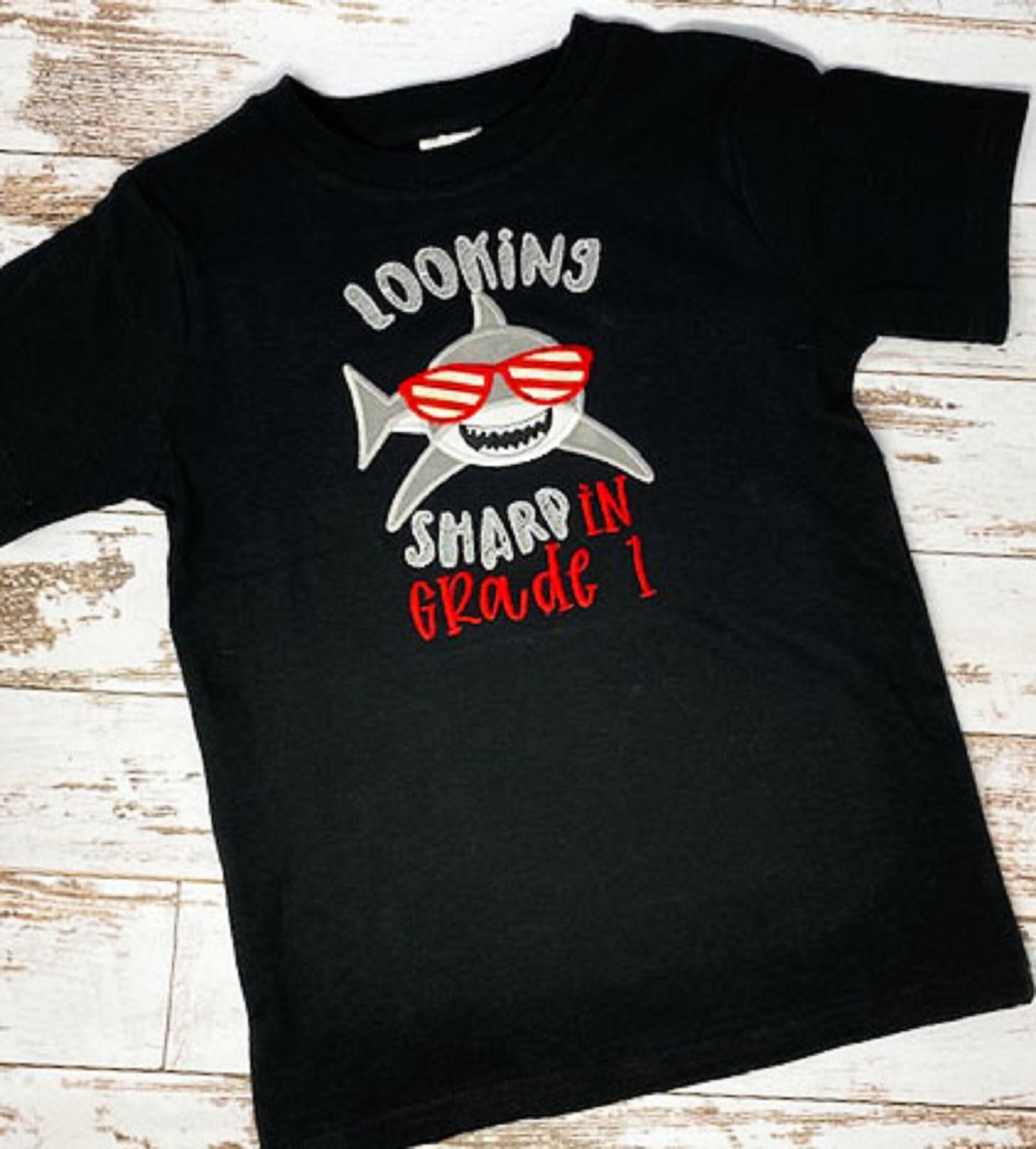 ANY GRADE, Looking Sharp in Grade 1 Shirt, Back to School Shirt, Boys Shark Shirt