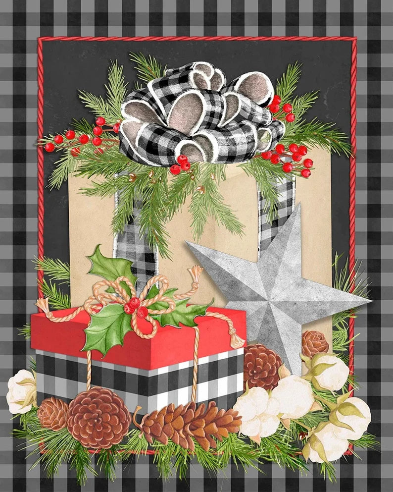 Christmas Gingham Fabric Panel 36"x44", Springs Presents and Star Christmas Fabric Panel