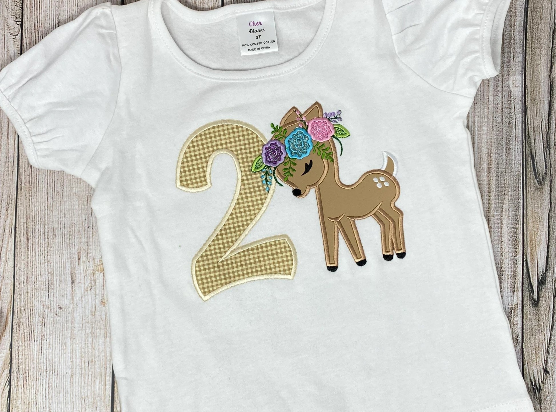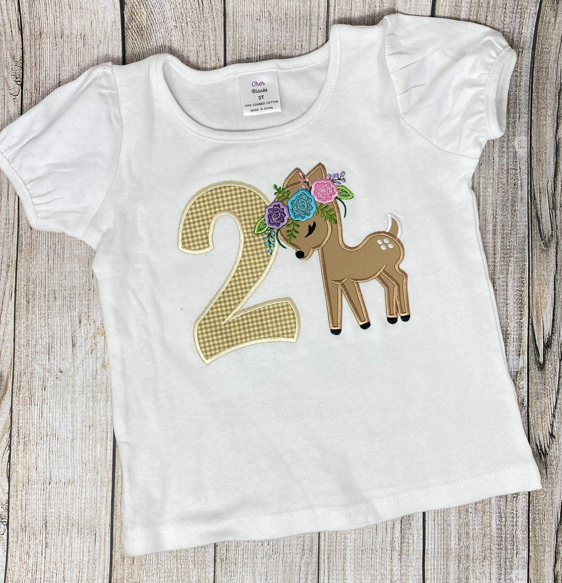 Deer 2nd Birthday Shirt, Any Age Any Name, Girls Birthday Shirt, Floral Deer Shirt