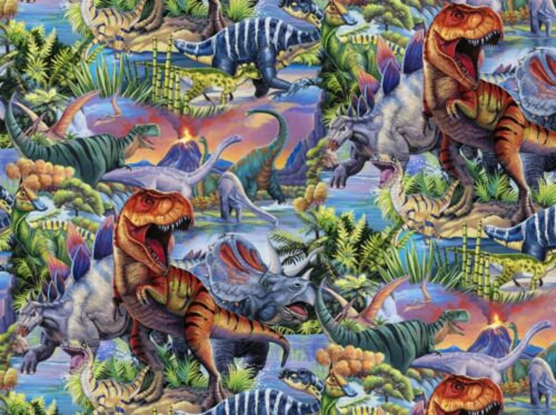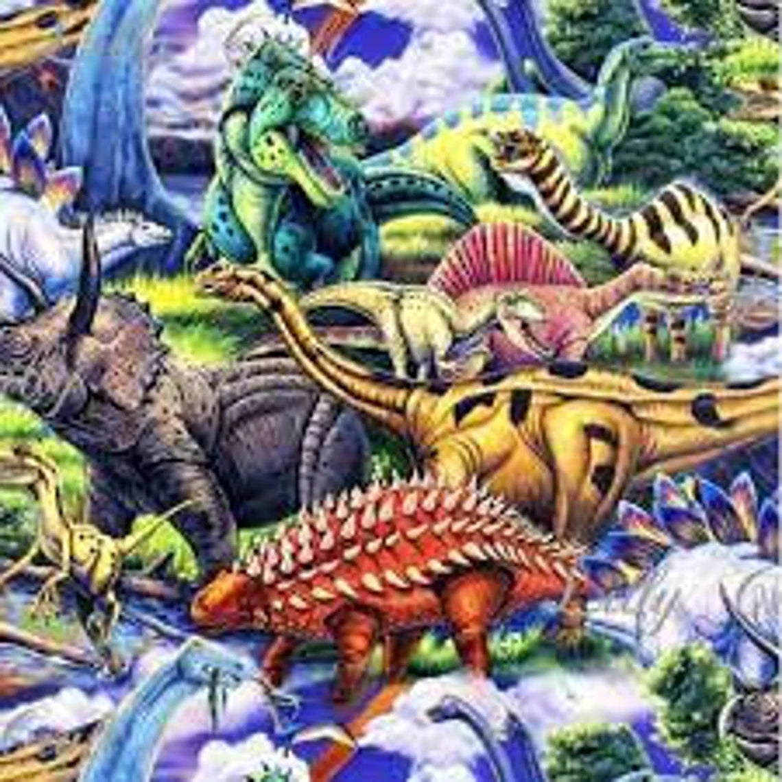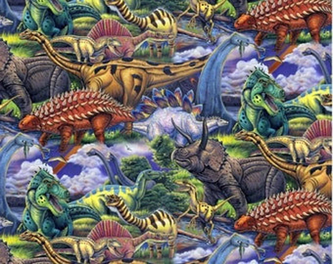 Dino World Dinosaur Allover Scene, Digitally Printed, Matching Panel available, Sold by the Yard, David Textiles