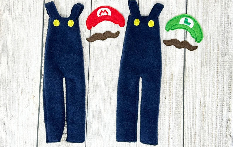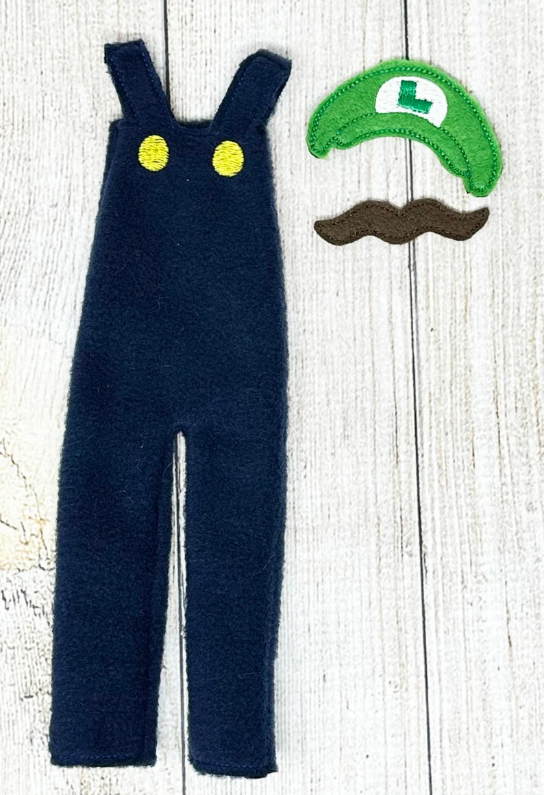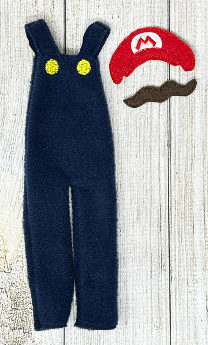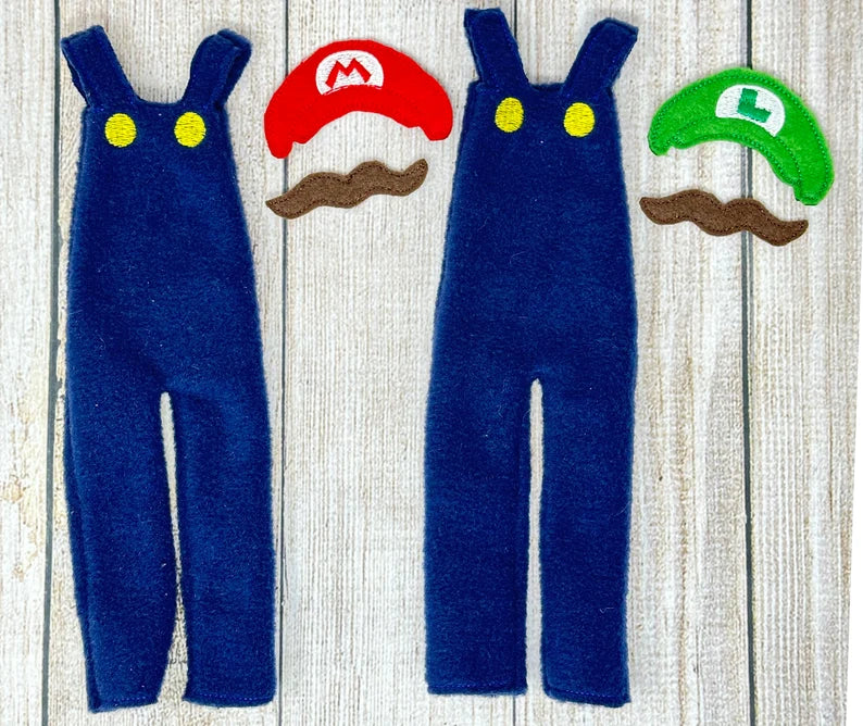 Hats and Mustaches are attached to doll with elastic. This listing for each color includes overalls, hat, and mustache.