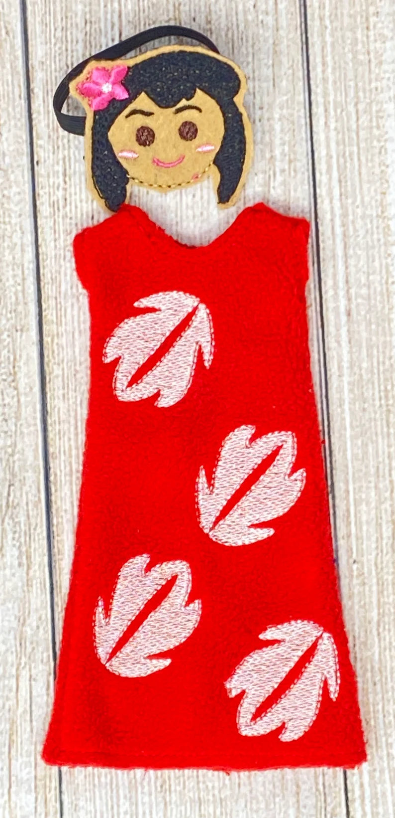 How to dress your doll/elf: insert the feet through the opening in the neck. You can use a pin or a forceps to grab the arms and pull them through. Easy peasy after you have done it one time!