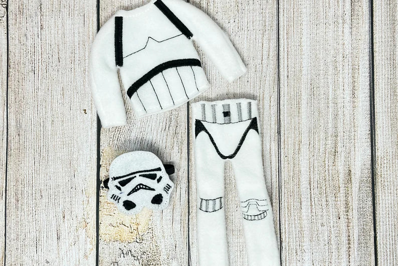 How to dress your doll/elf: insert the feet through the opening in the neck. You can use a pin or a forceps to grab the arms and pull them through. Easy peasy after you have done it one time!