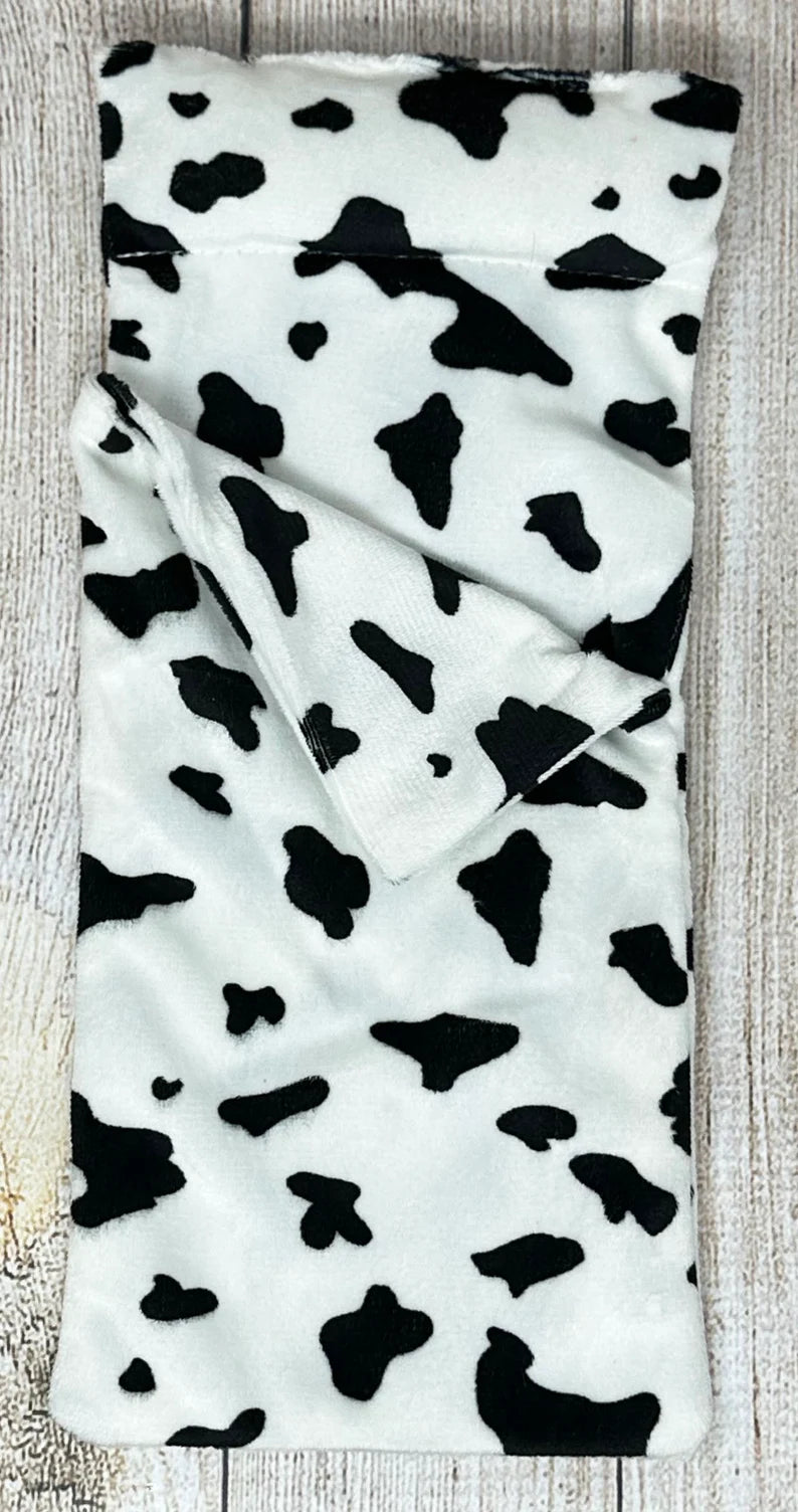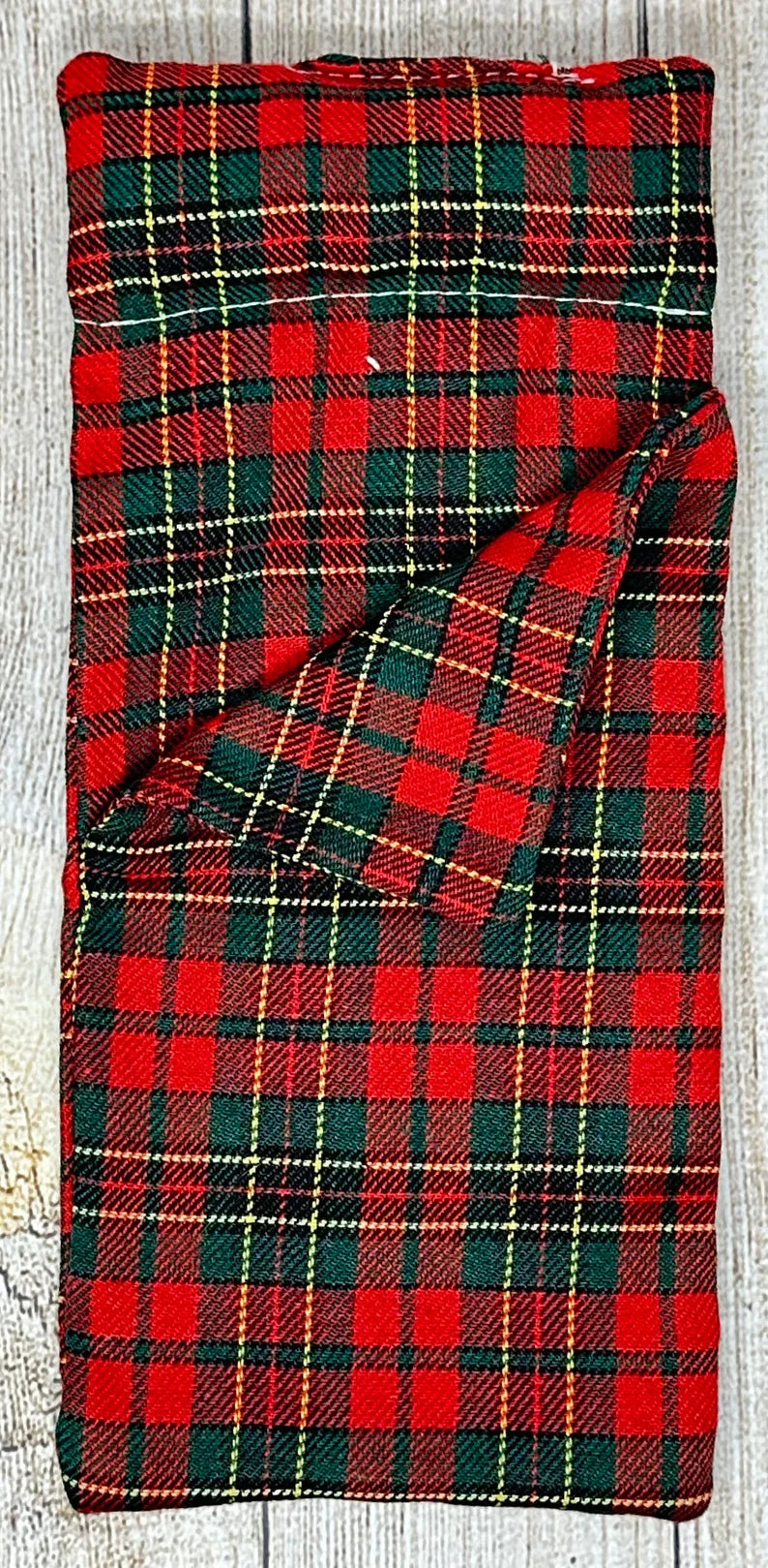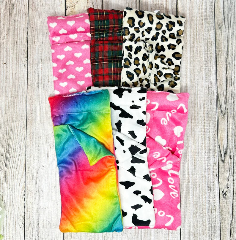 Sleeping bags fit 11-12 inch dolls. They are so cute and soft. The red plaid sleeping bag is made of cotton fabric, all of the other sleeping bags are made of super soft minky. The each have one raised pillow end and a folded over area on one side so it is easier to get the doll in and out.