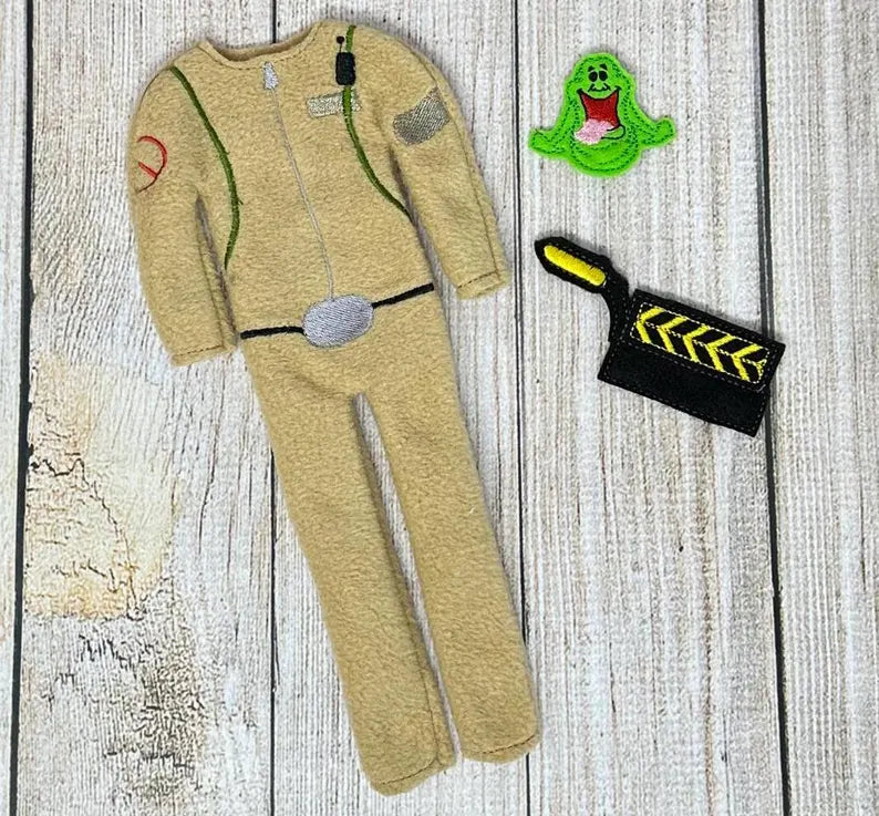 This listing includes the Suit, Trap, and Ghost! How Fun! The Trap and the Ghost both have a strip of elastic at the back to you can slip them onto the doll's hands. This way you don't have to figure out a way to display them!