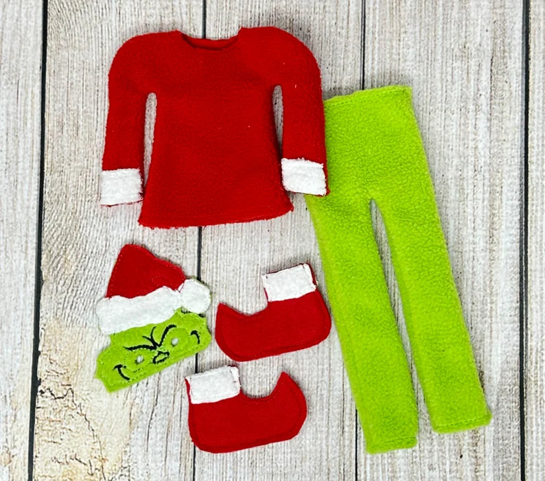 Elf Sweater Mask Pants Boots, Elf Outfit Slippers, Doll Clothes, Christmas Elf, Elf Props