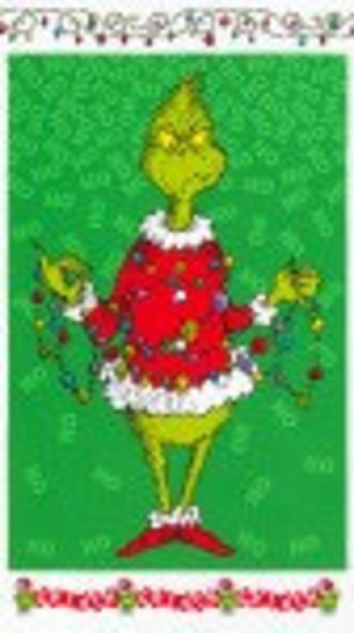 Grinch Fabric Panel 24"x44", How the Grinch Stole Christmas, 100% Quilt Shop Cotton, Fabric by the Yard, Robert Kaufman