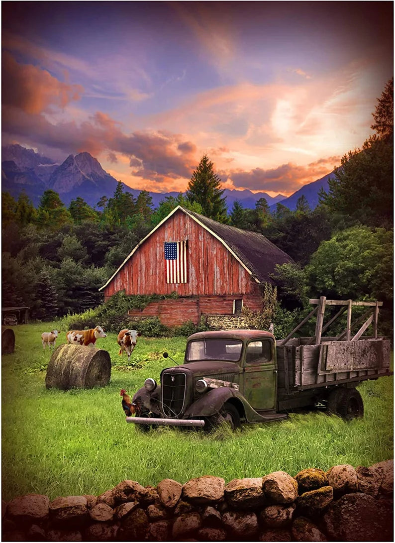 Very realistic Farm Fabric Panel featuring the US Flag on the barn.