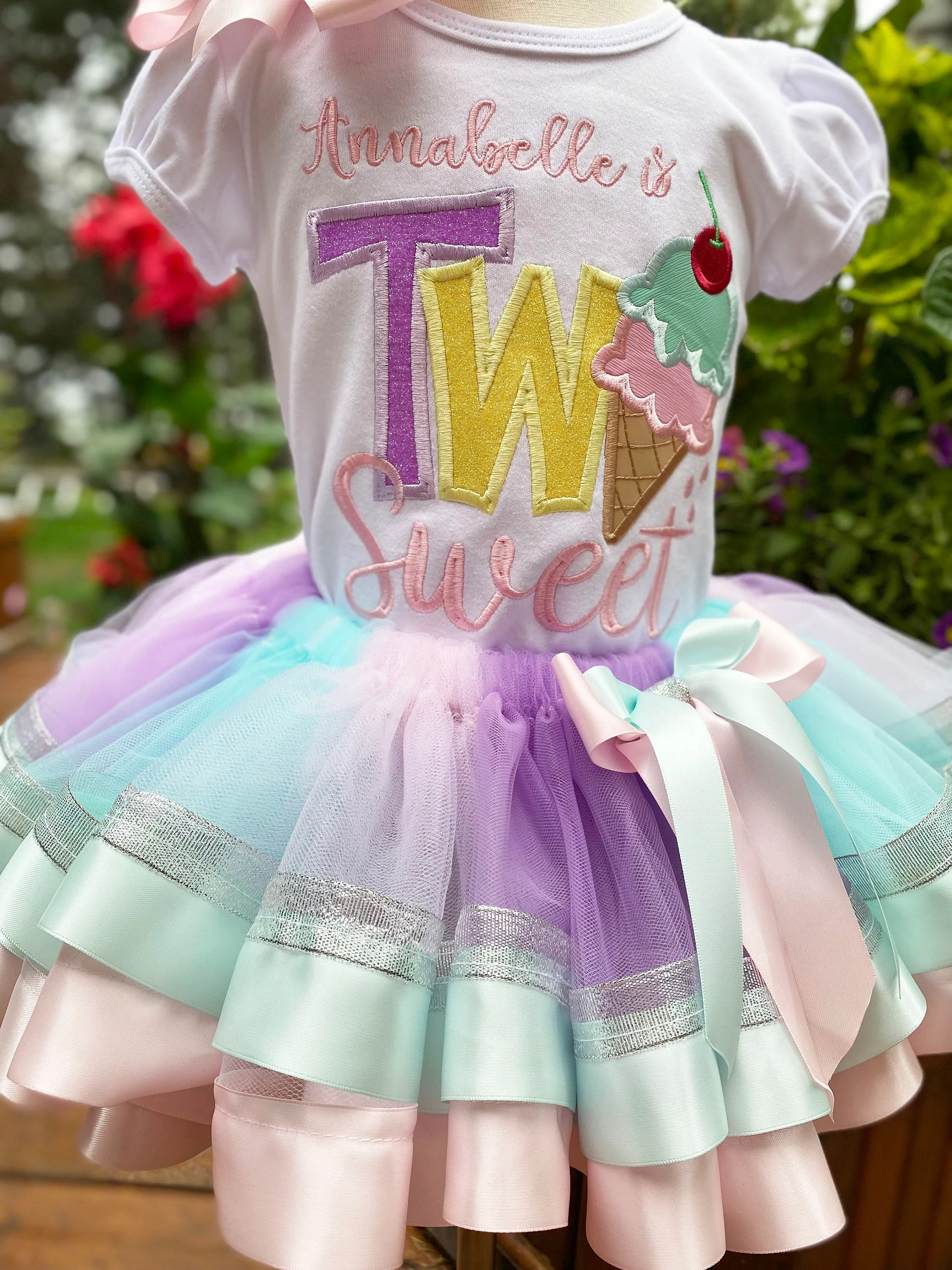 TWO Sweet Birthday Tutu Set, 2nd Ice Cream Cone Birthday Shirt Matching Hairbow, ANY AGE, Any Size Birthday Shirt