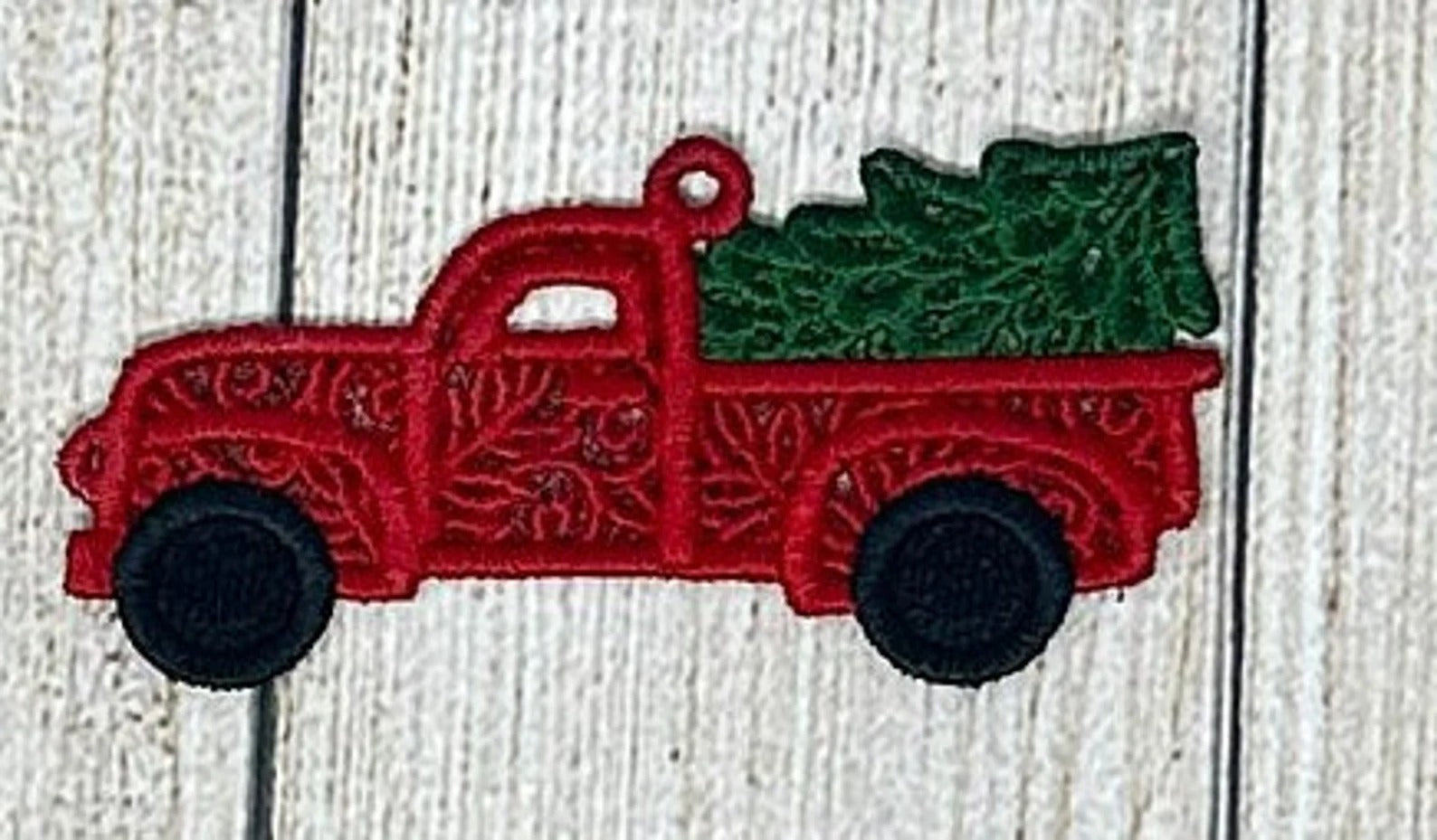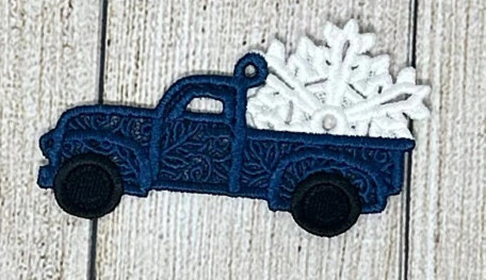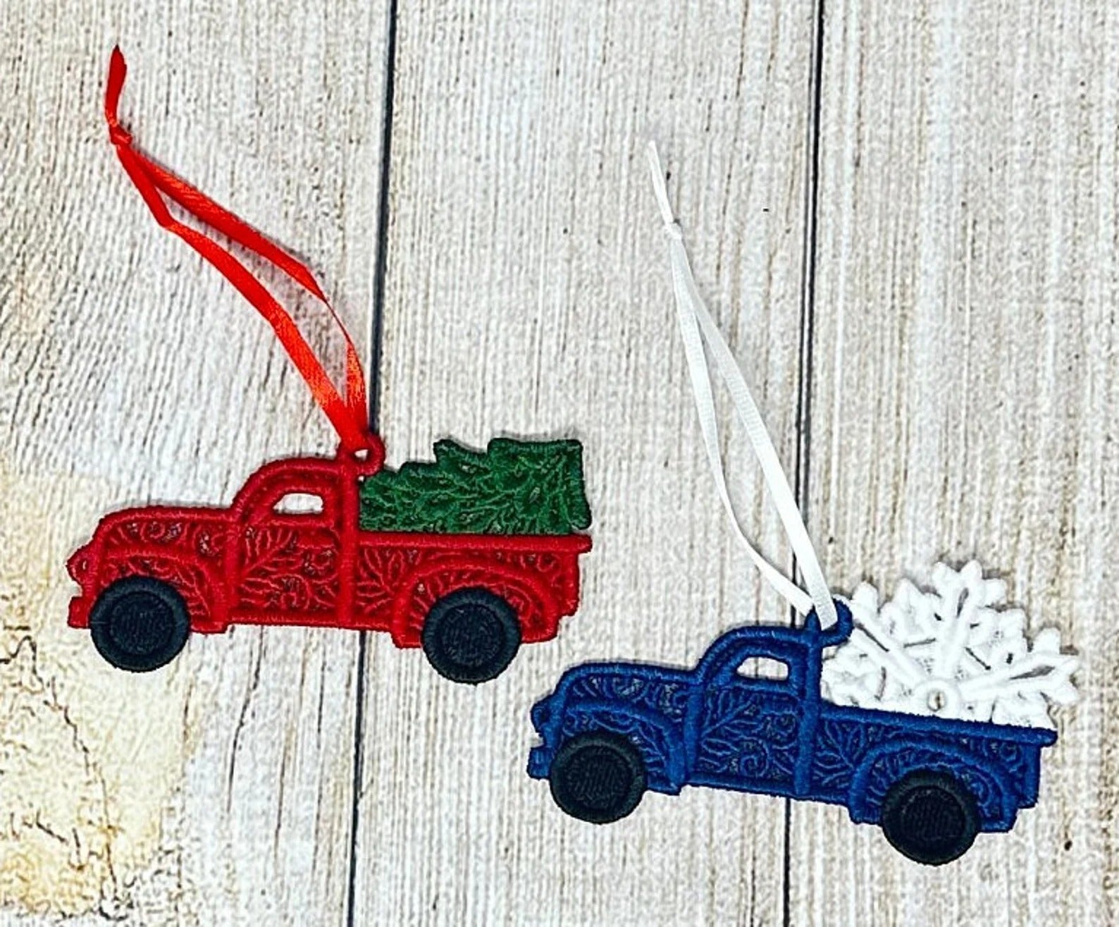Lace Truck Ornament, Embroidered Truck Ornaments, Red Truck with Christmas Tree, Blue Truck with Snowflake, Gift, Hanging Ornament