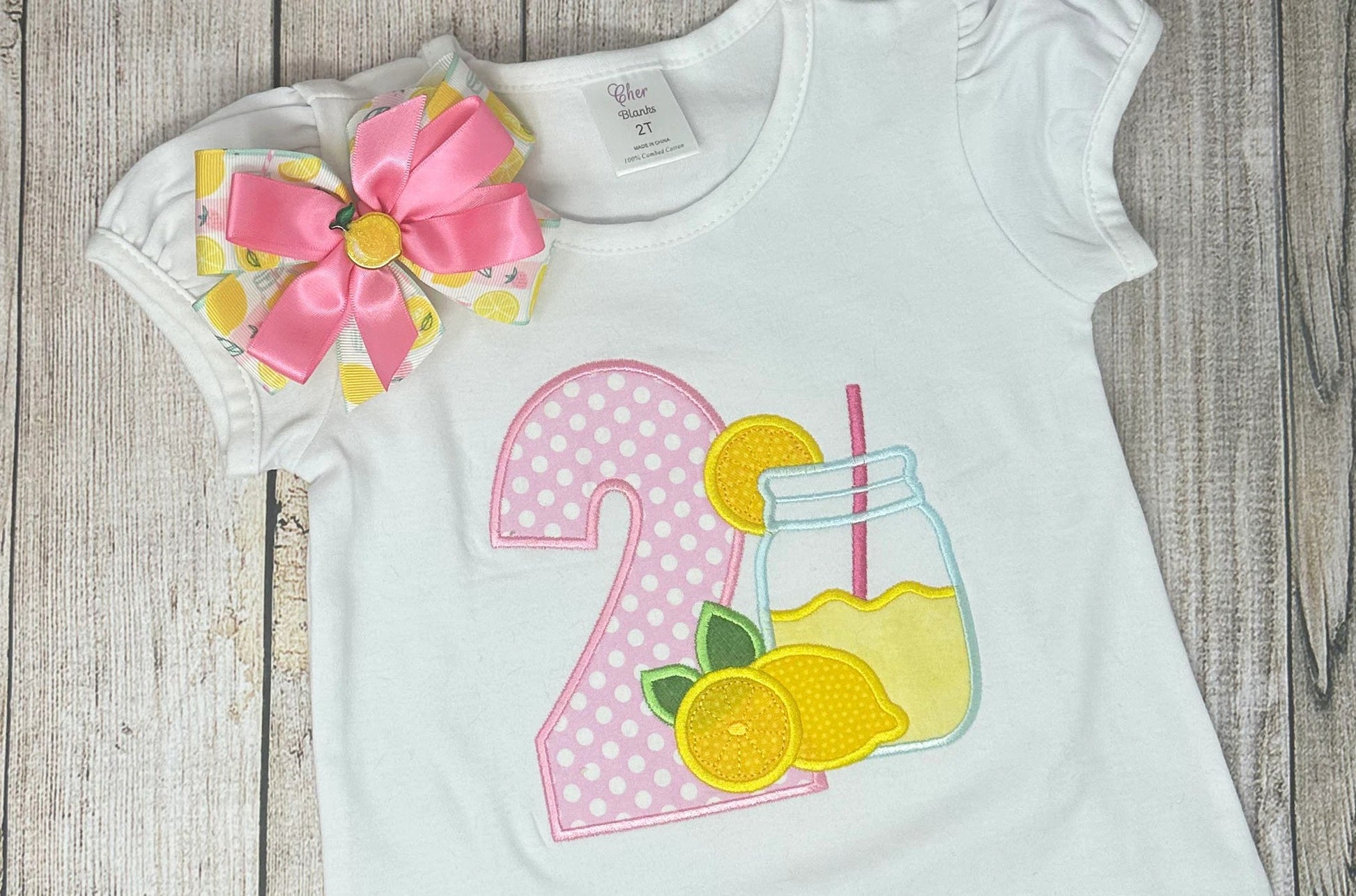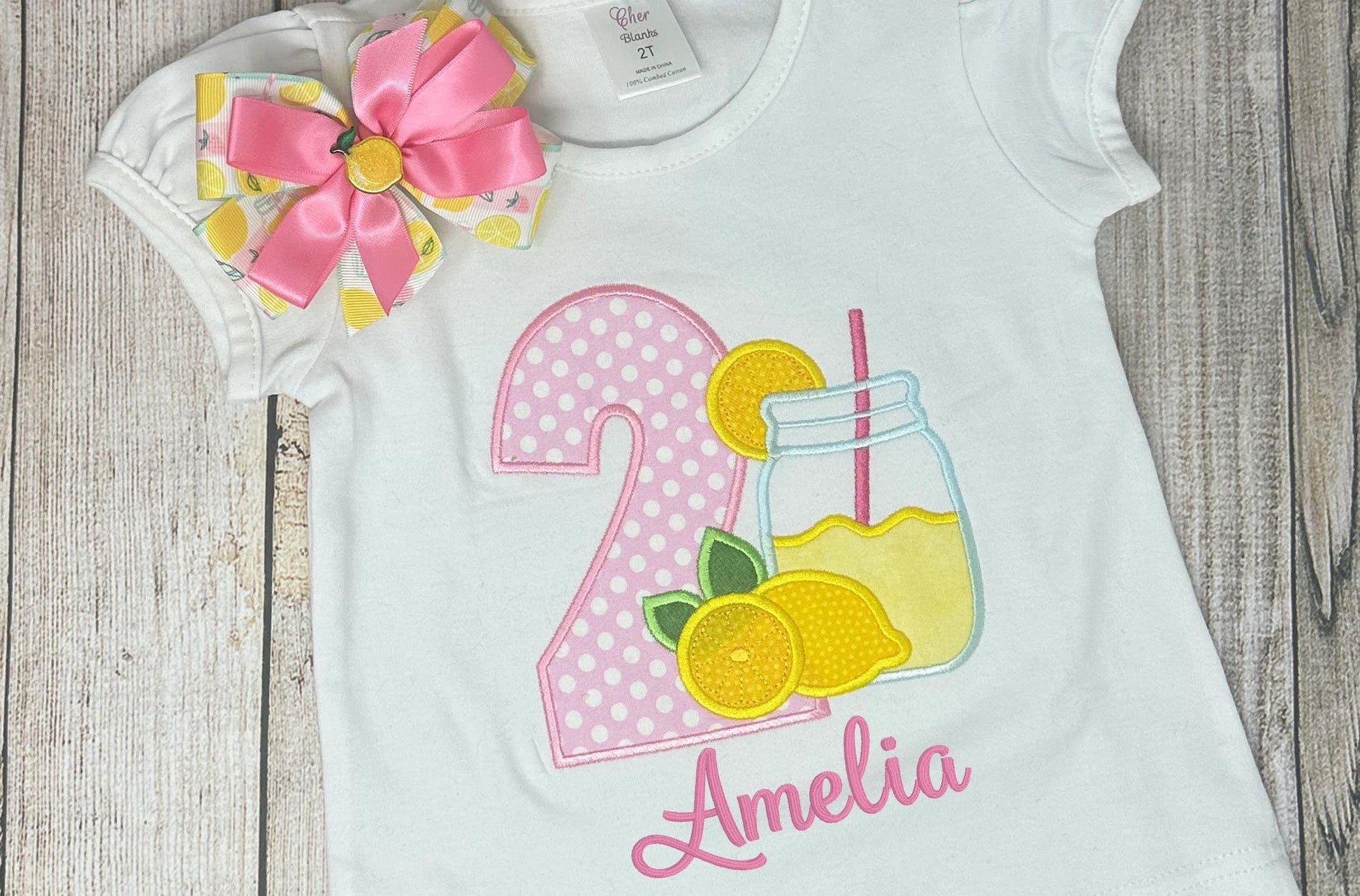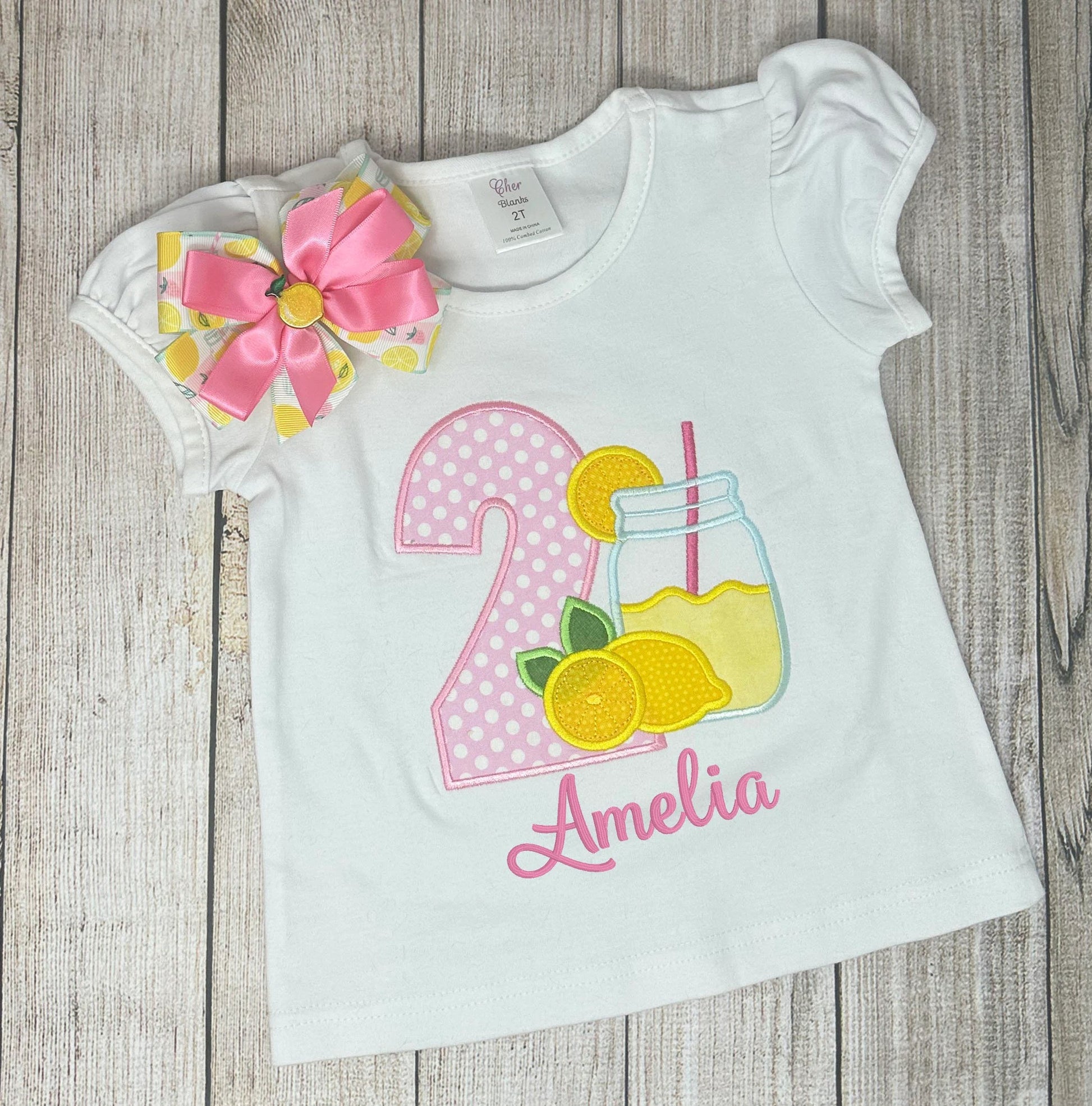 Lemonade Birthday Shirt and Hairbow, 2nd Birthday Gift Girl Shirt, ANY Size, ANY Age, Lemon Jar Birthday Shirt