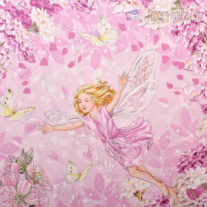 RARE Pink Petal Flower Fairies Cotton Quilt Fabric Panel by Michael Miller 23" x 43"