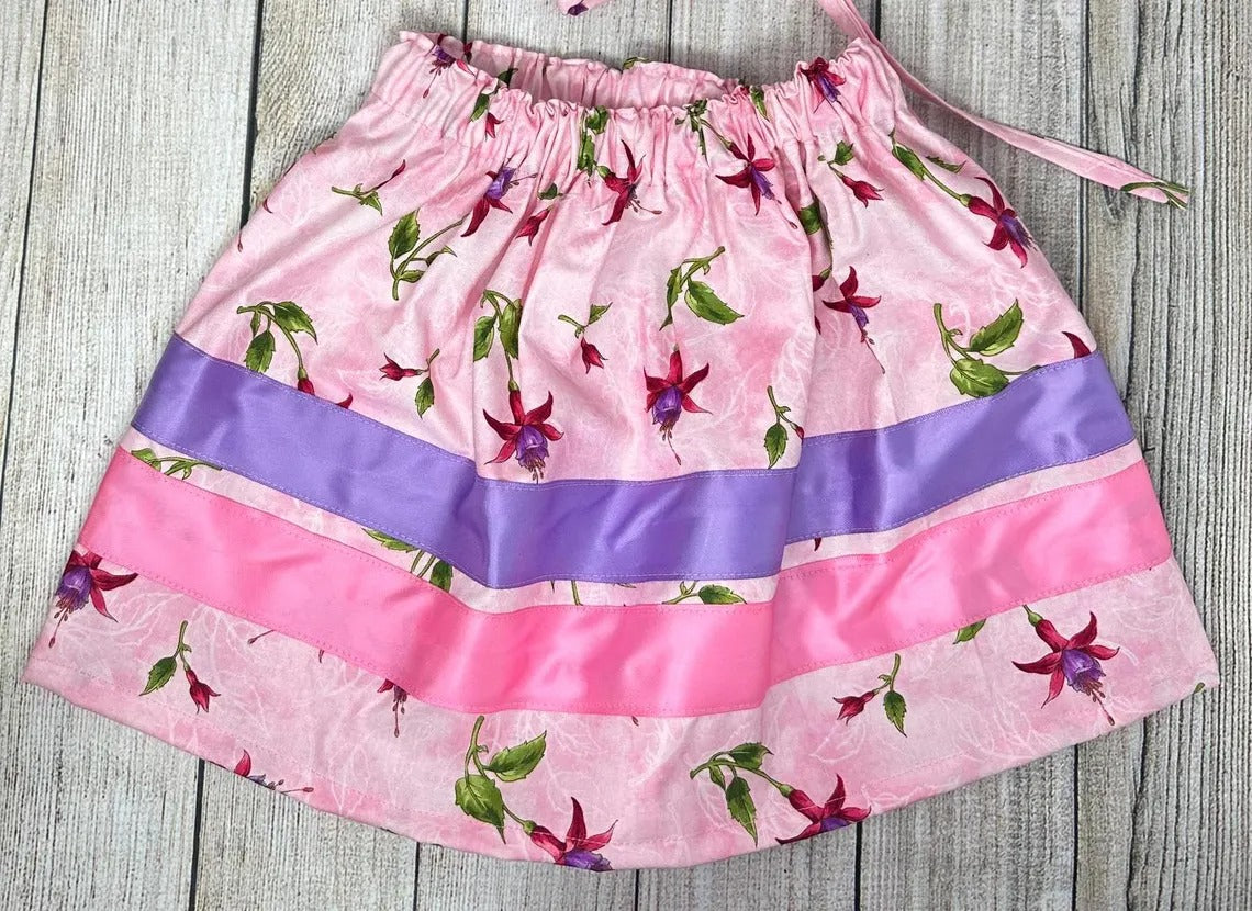 The cutest baby girl Handmade Ribbon Skirt and Bonnet Indigenous Set. Soft fushia floral cotton in bright mauve and pinks. Bonnet is fully lined with matching ties. Skirt has serged seams for durability features a paper-bag designed waist (approximately 18" relaxed) and 10" long. Perfect for ages 0-6 months, this set is ready to ship!