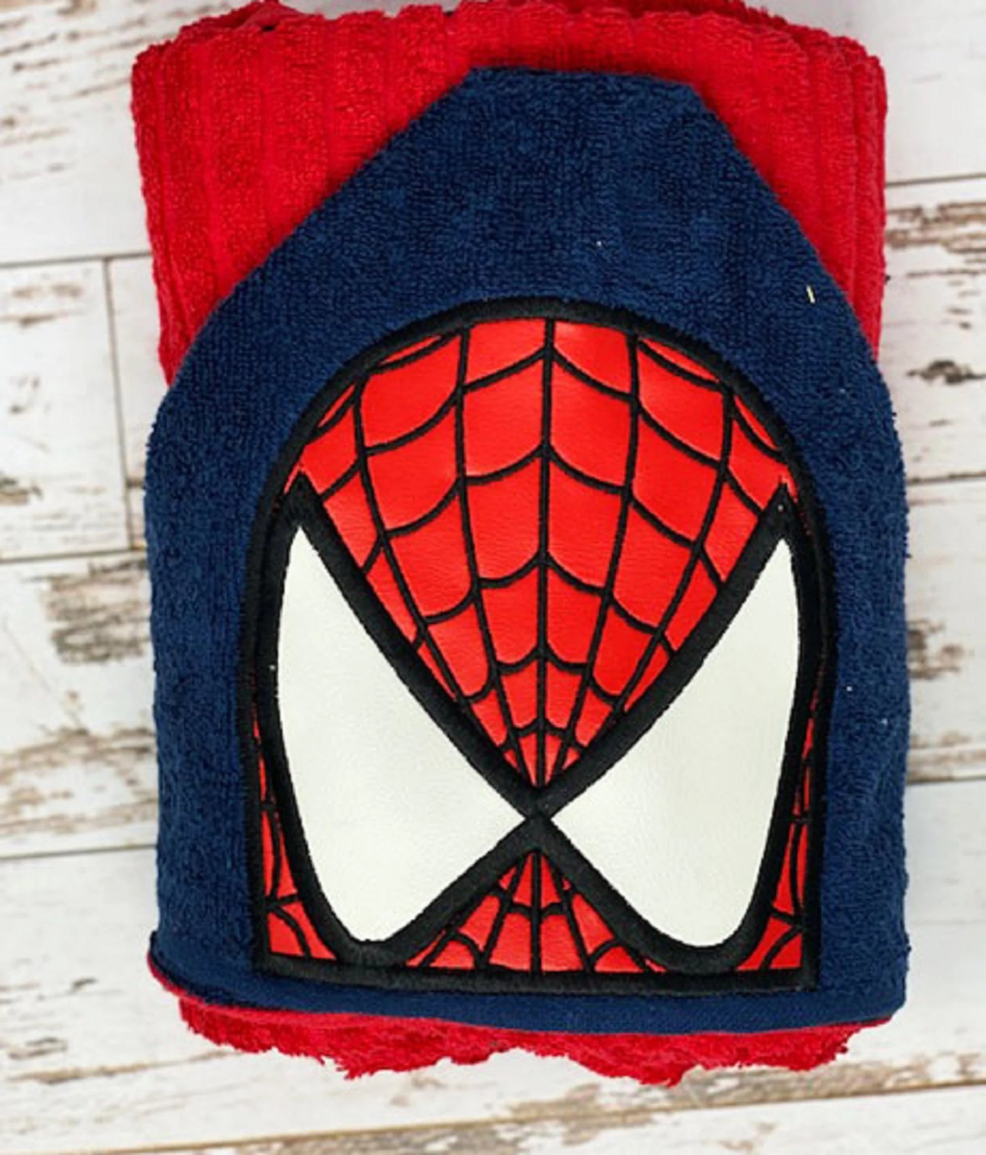 Hooded Towels are made with vinyl fabric for the characters and top quality towels for the hood and bath towel bottom. I use full size bath towels measuring approximately 30" x 54".