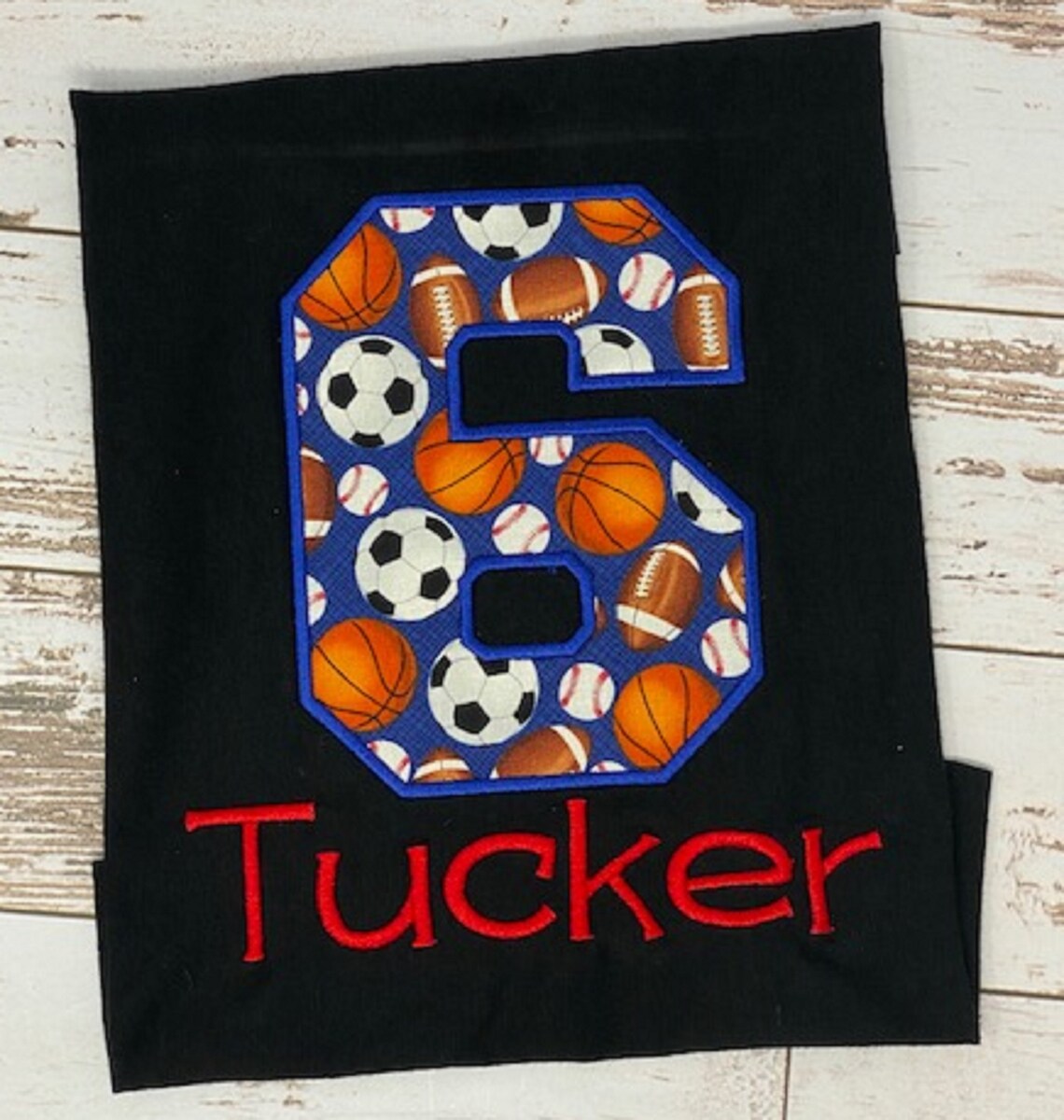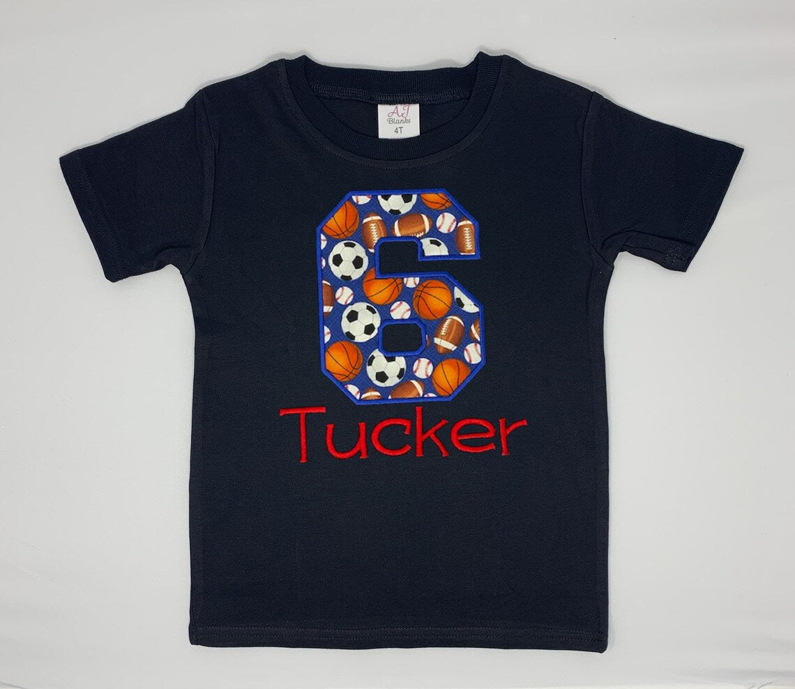 Sports Birthday Shirt - Basketball Volleyball Football Baseball Shirt - Six Birthday - Boys Birthday Shirt - Black Red Royal Blue