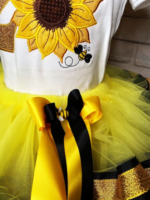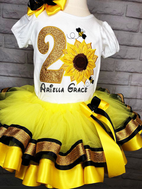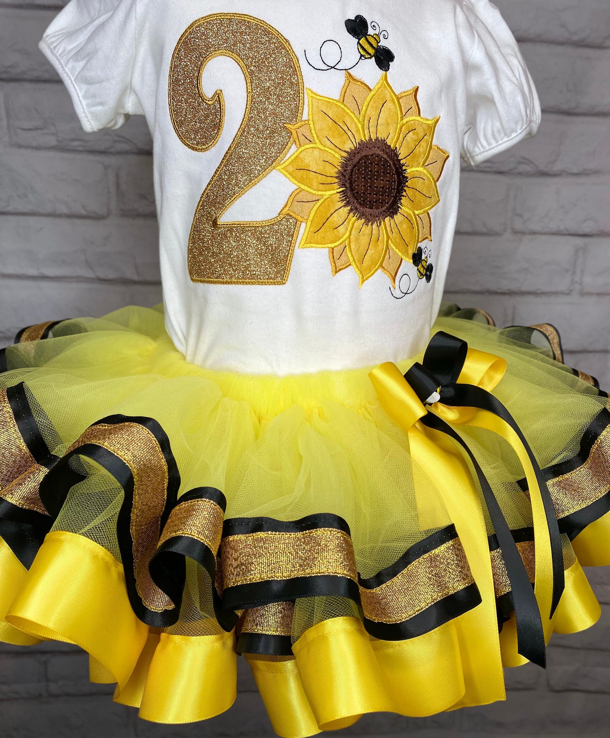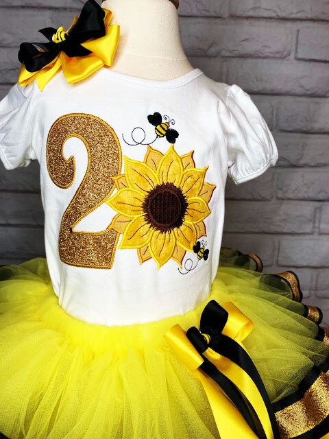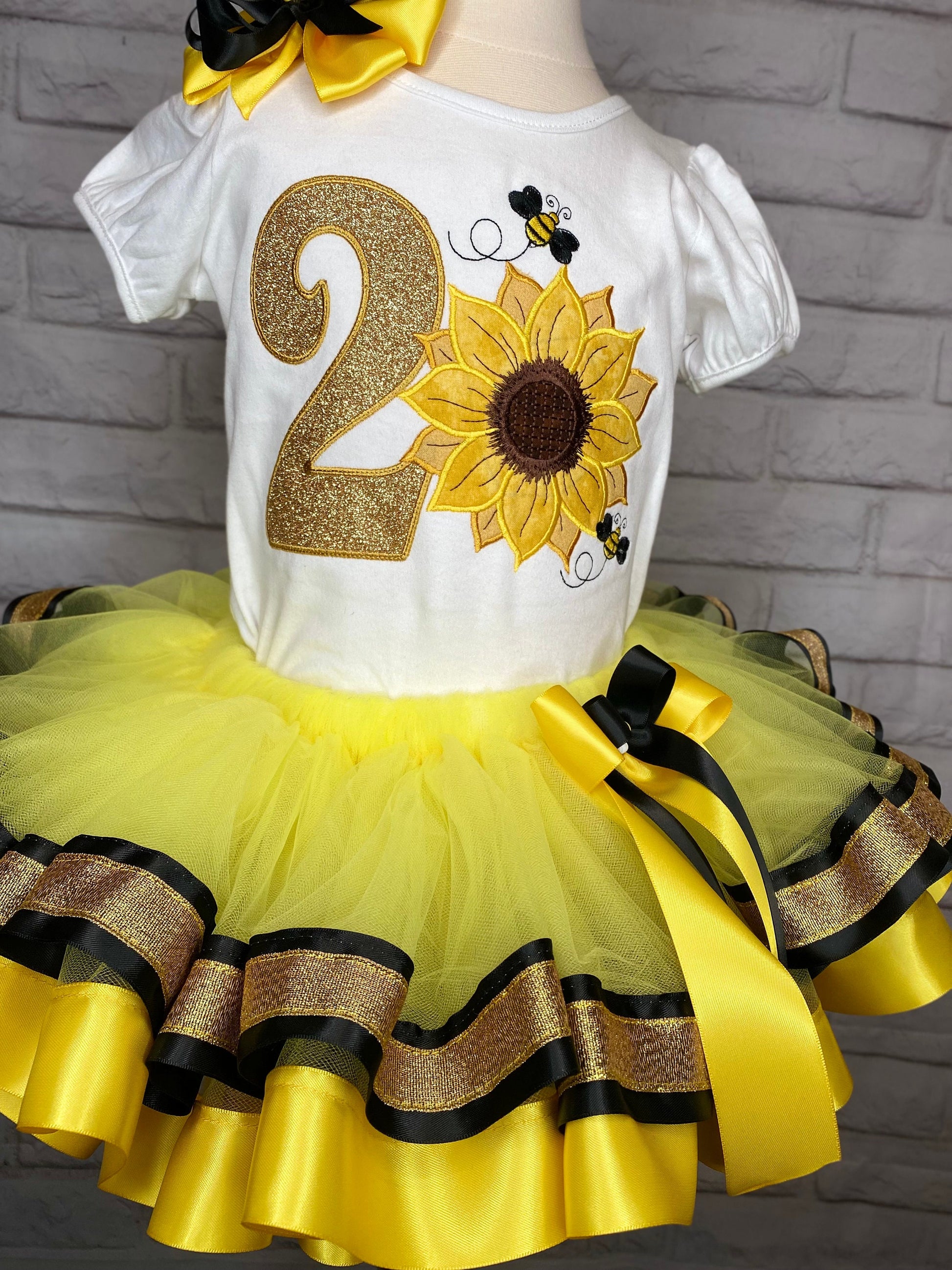 Sunflower and Bees,  Sunflower Tutu Set, 2nd Birthday Shirt, Fall Birthday, Sunflower Birthday Shirt, Sunflower Bee Skirt