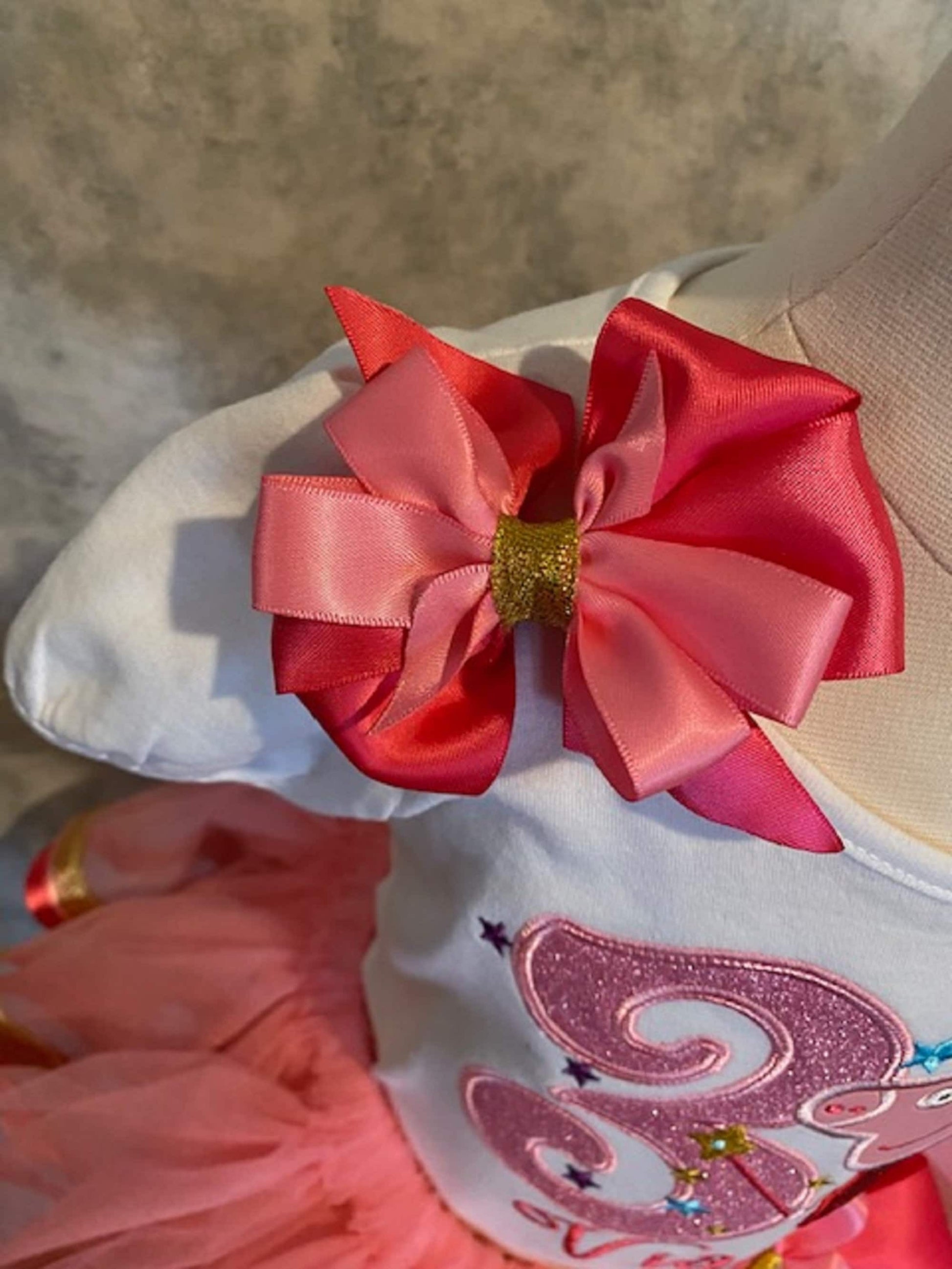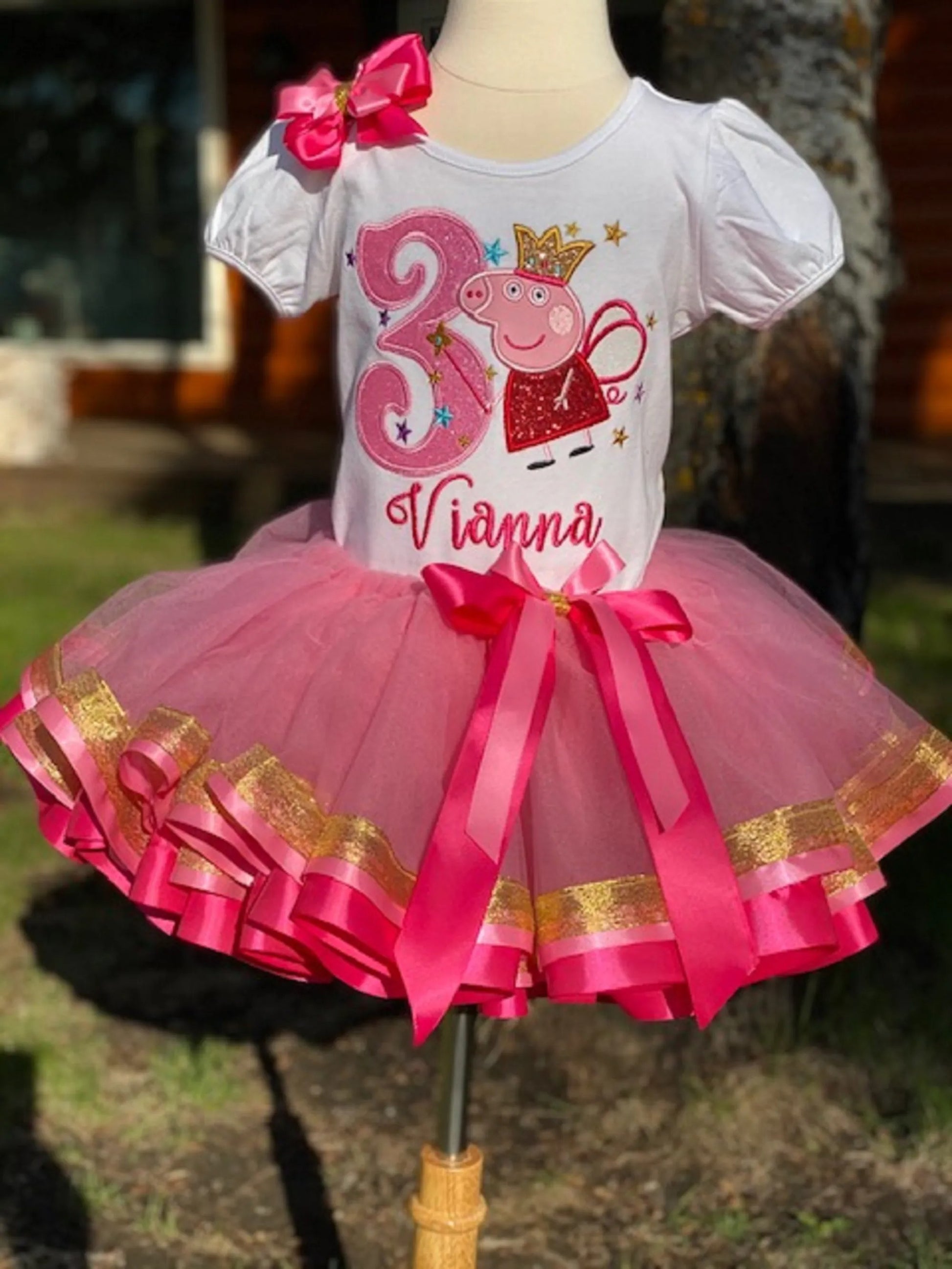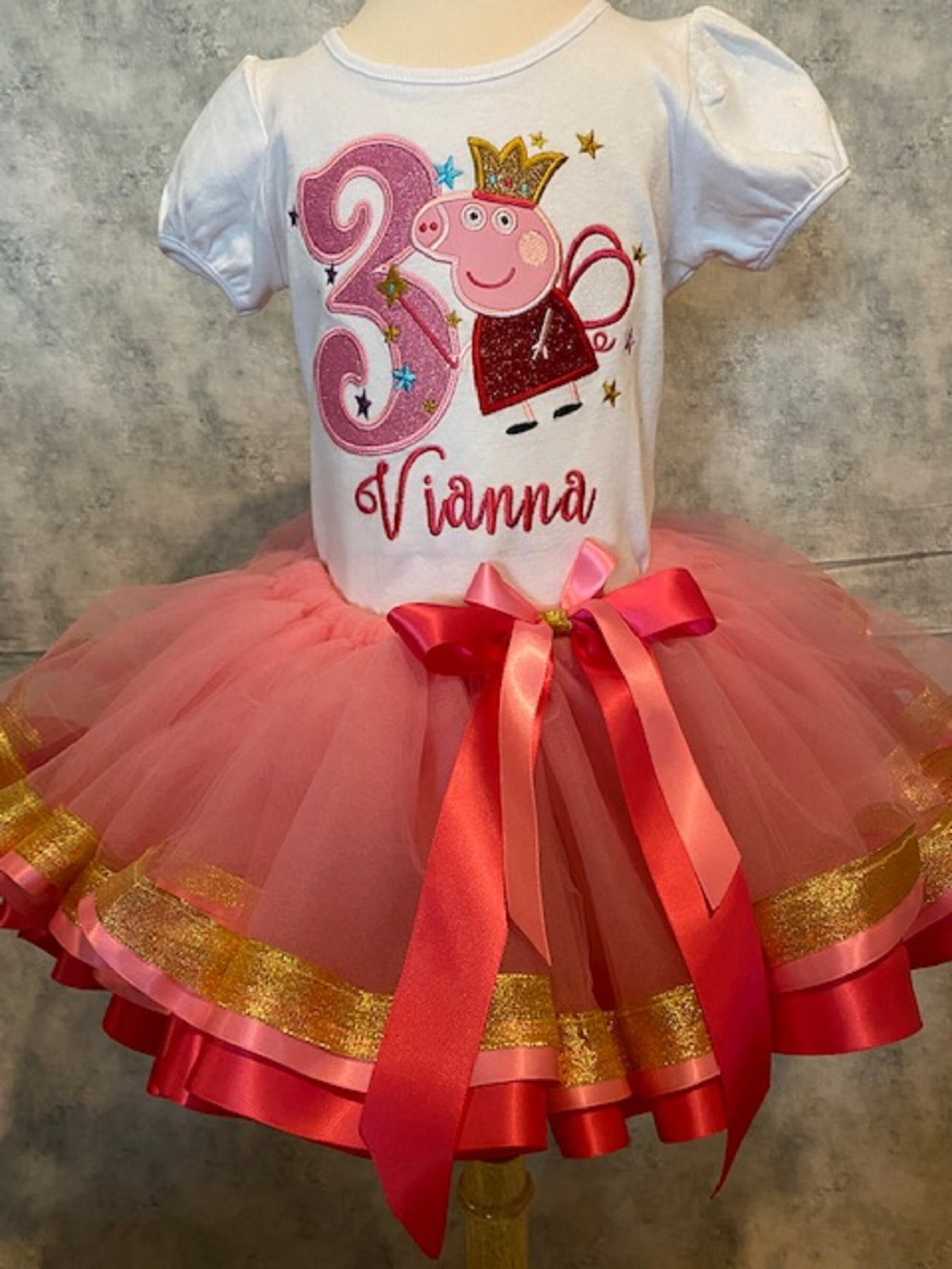 This cute Pink Pig Tutu features three different ribbons and the cutest ever Pink Pig shirt and matching hairbow making it SUPER CUTE! Shirt, Tutu, and Hairbow are also all available separately.