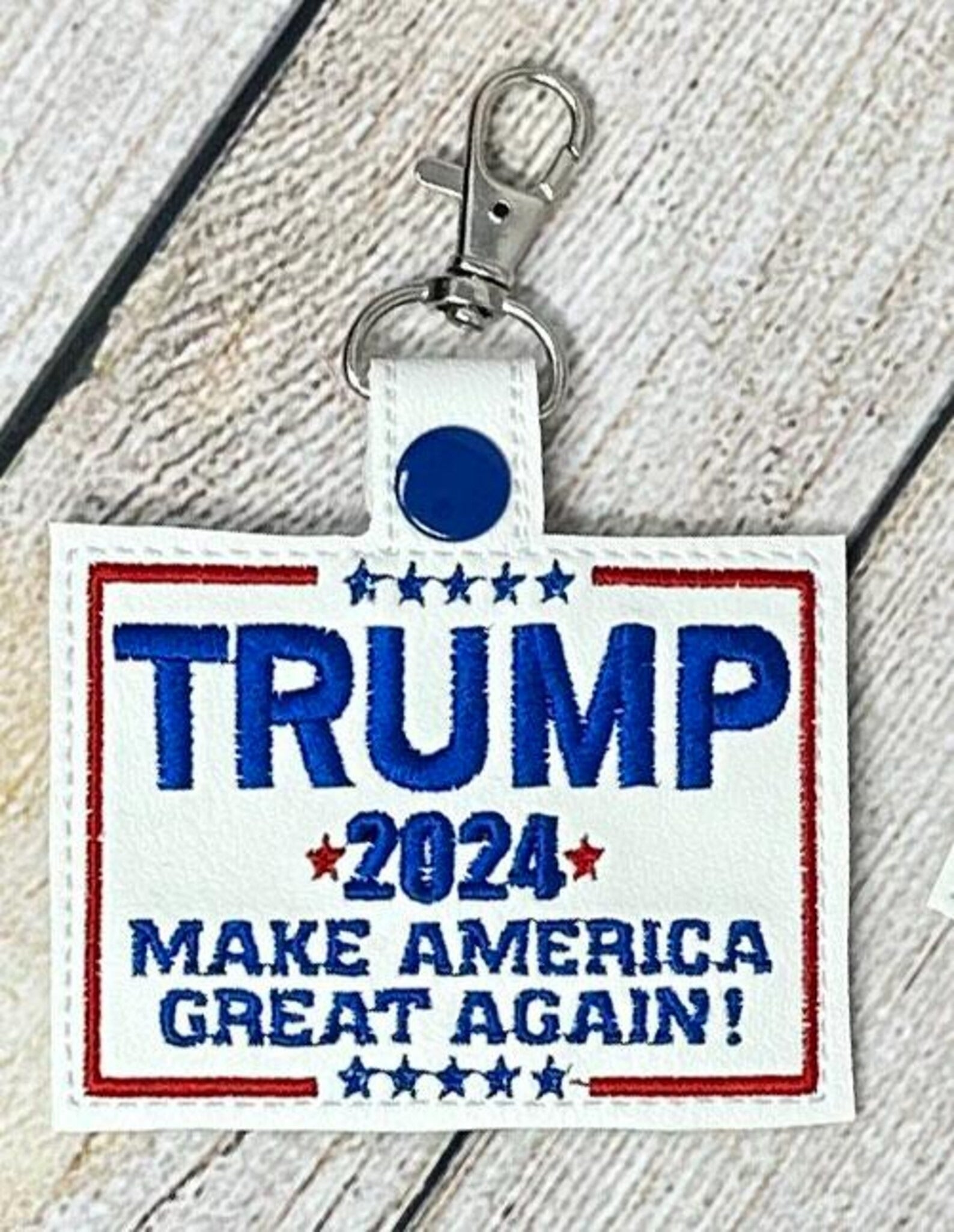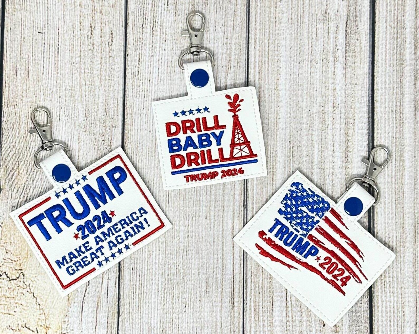 Trump Key Fobs embroidered on top quality marine vinyl. You choose any one or all of them! These are soooo fun!