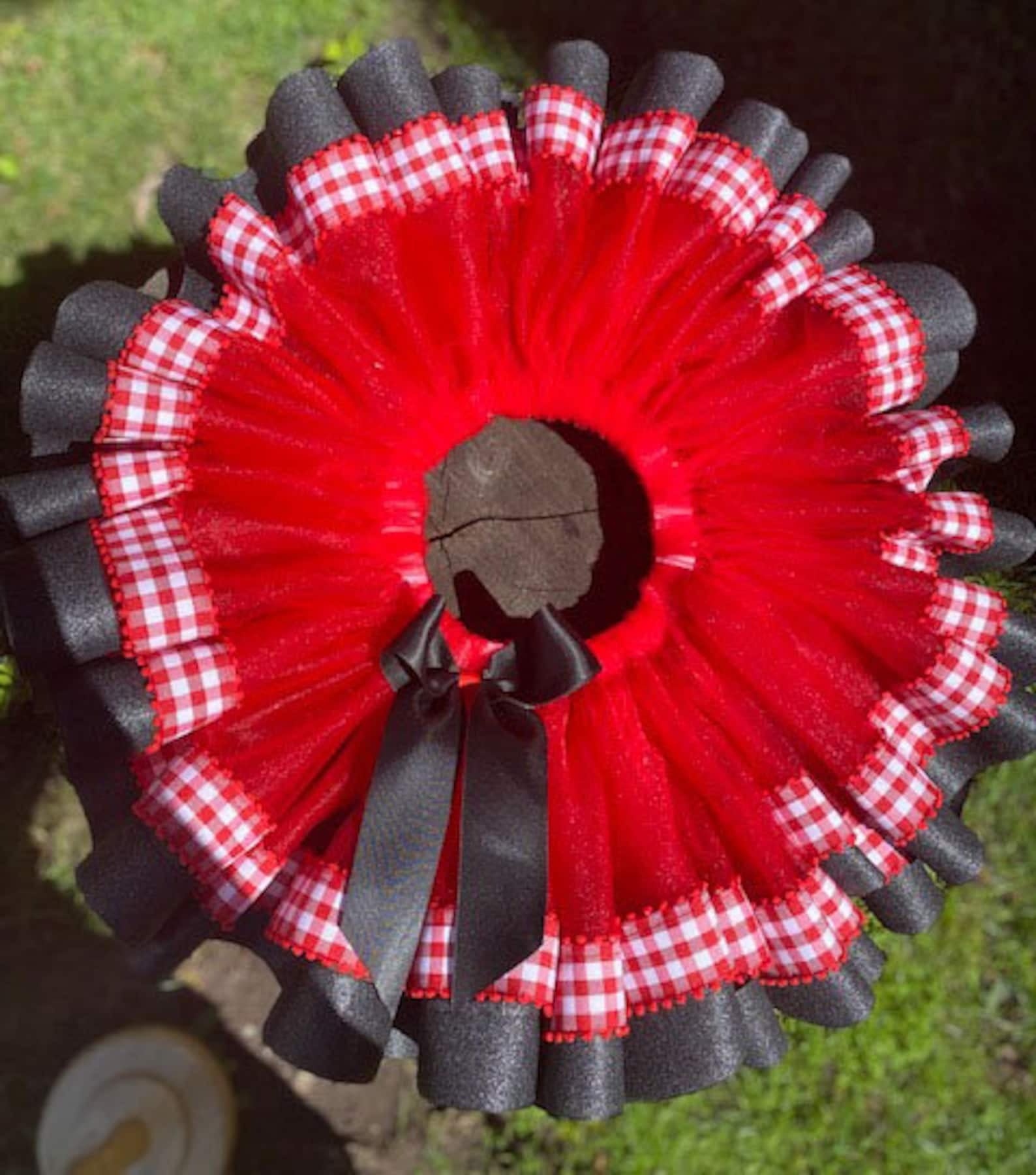 This cute Tutu features a cute red plaid picot ribbon in keeping with the farm theme and is very fluffy! Shirt, Tutu, and Hairbow are also all available separately.