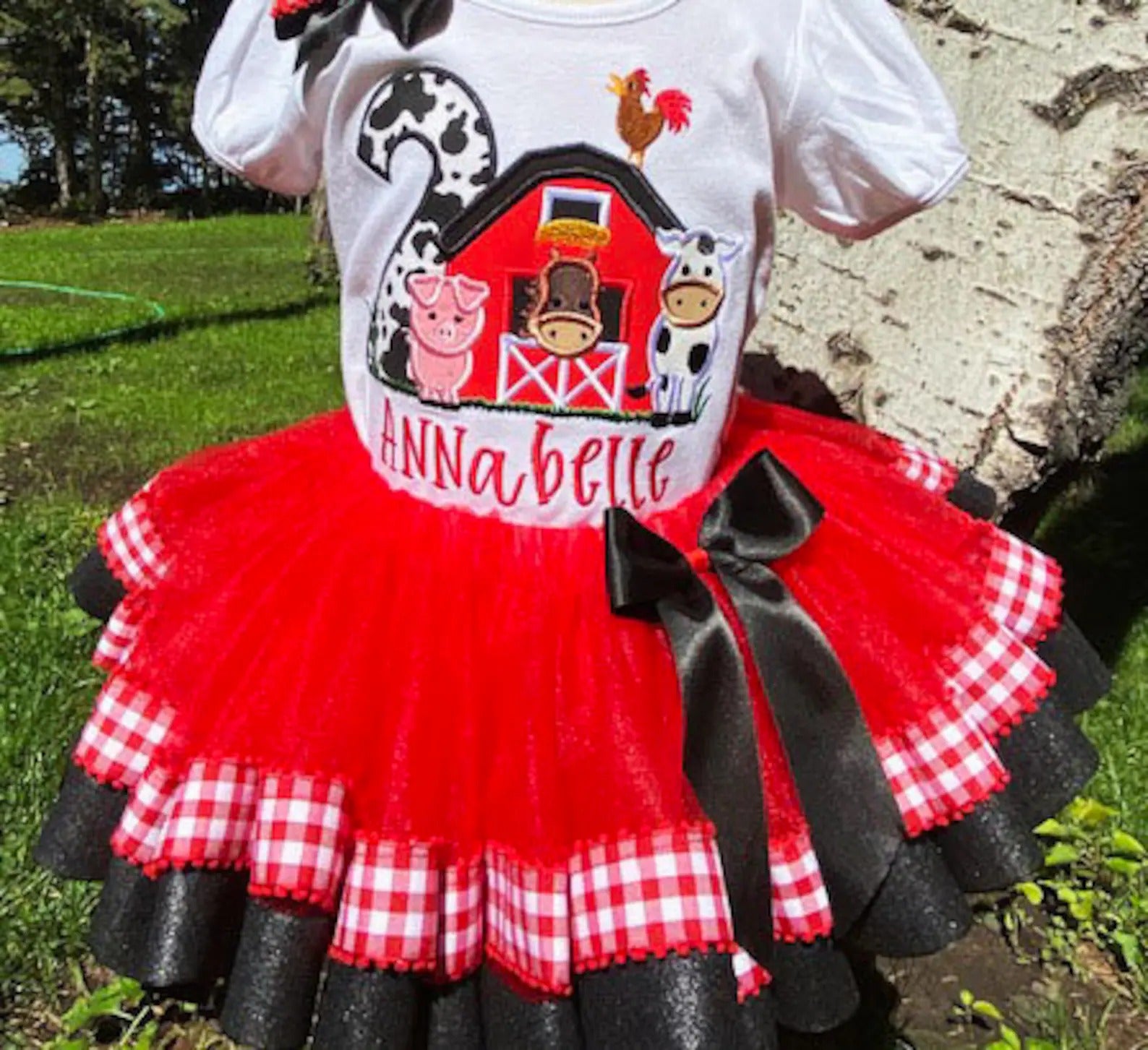 ANY AGE, Farm Barn Tutu Set, Cow Pig Chicken Horse Cow Tutu Shirt and Hairbow, 2nd Birthday Farm