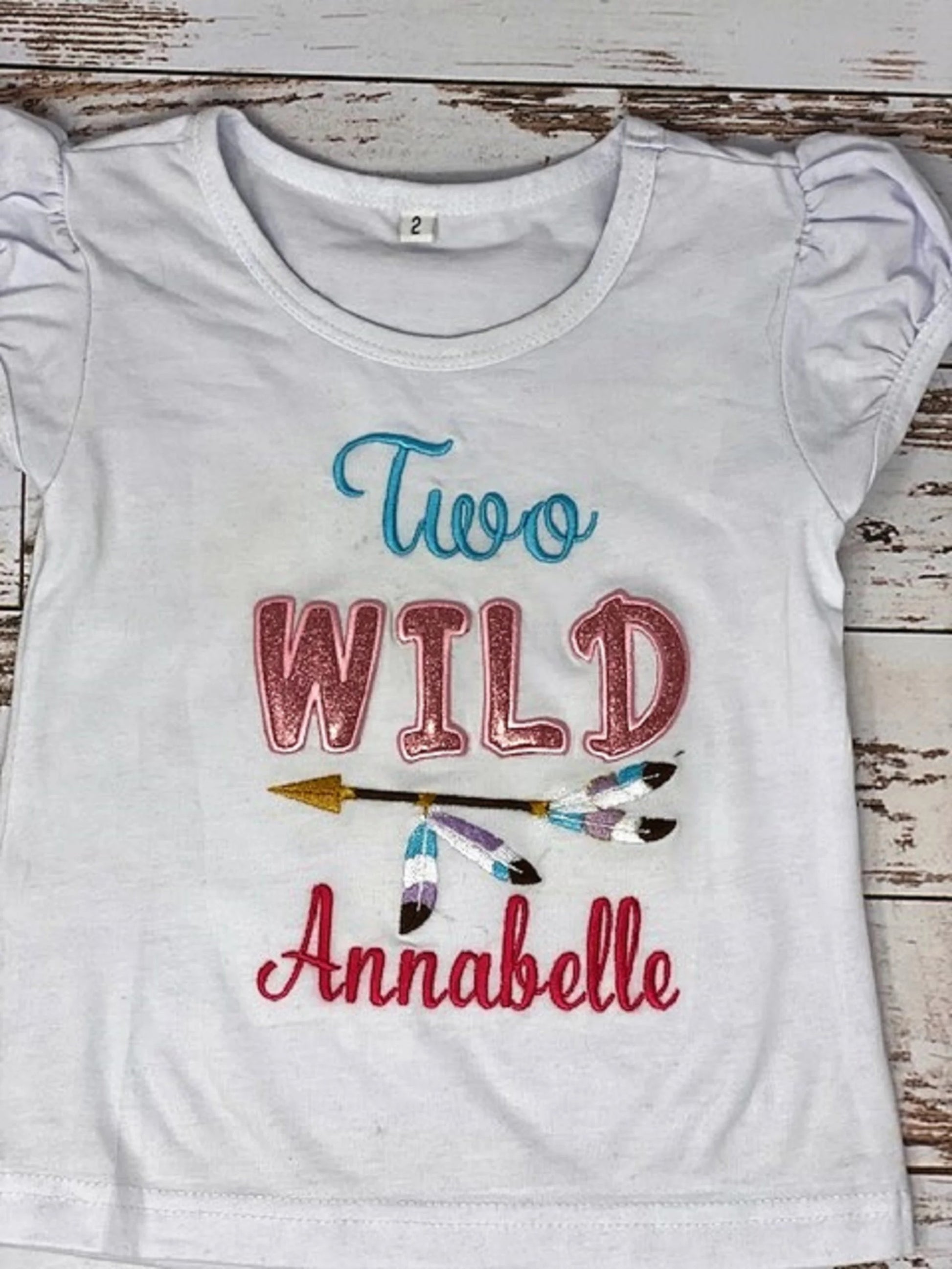 Two Wild Girls Birthday Shirt | 2nd Birthday Shirt | 2nd Birthday Wild Feathers Pink Pastel Shirt | Party Girls Two Wild Shirt