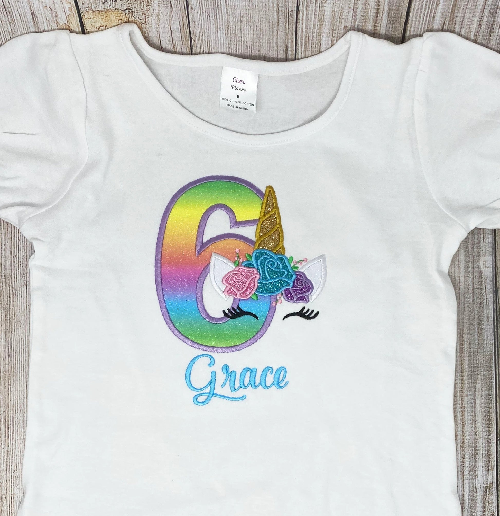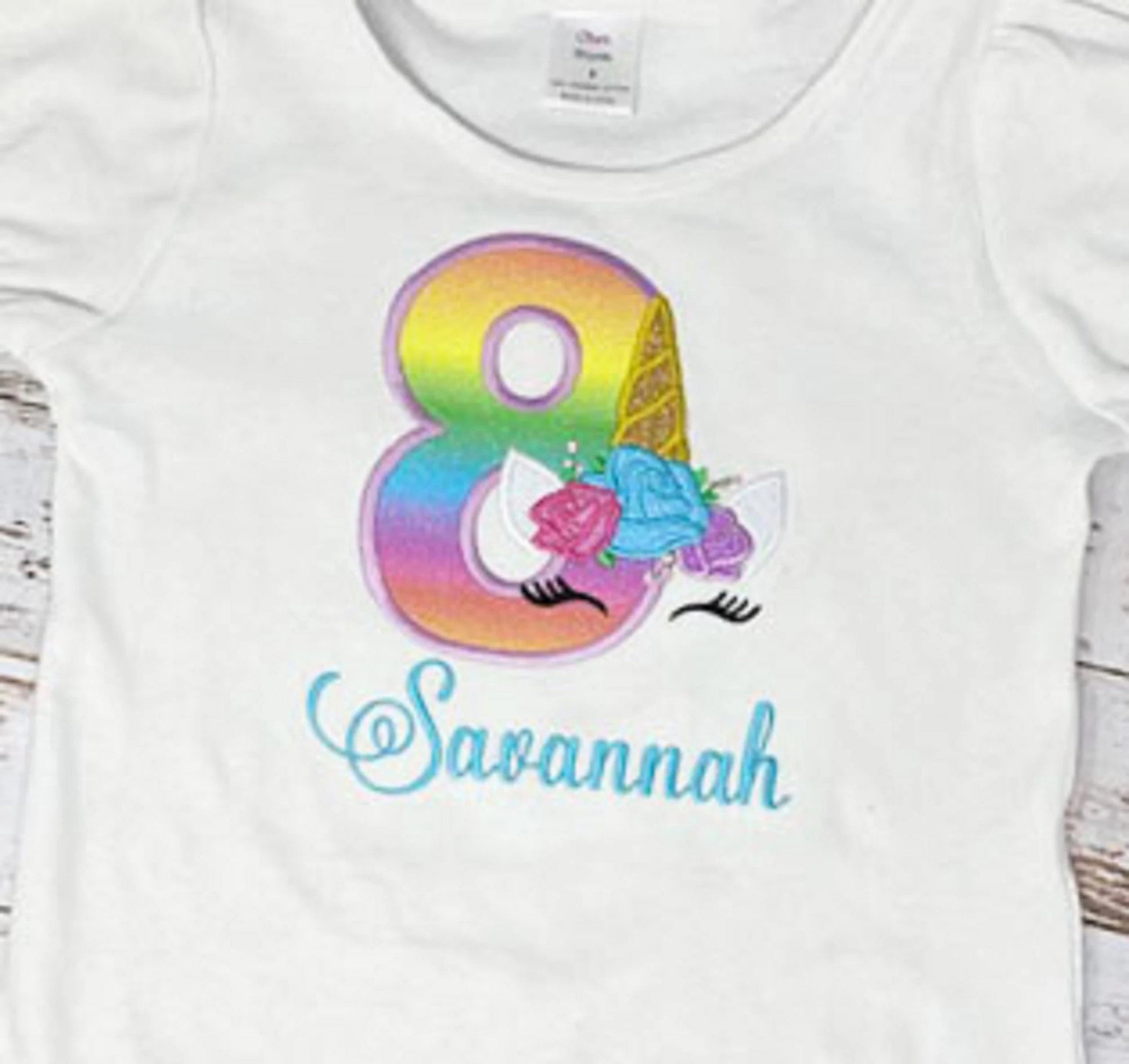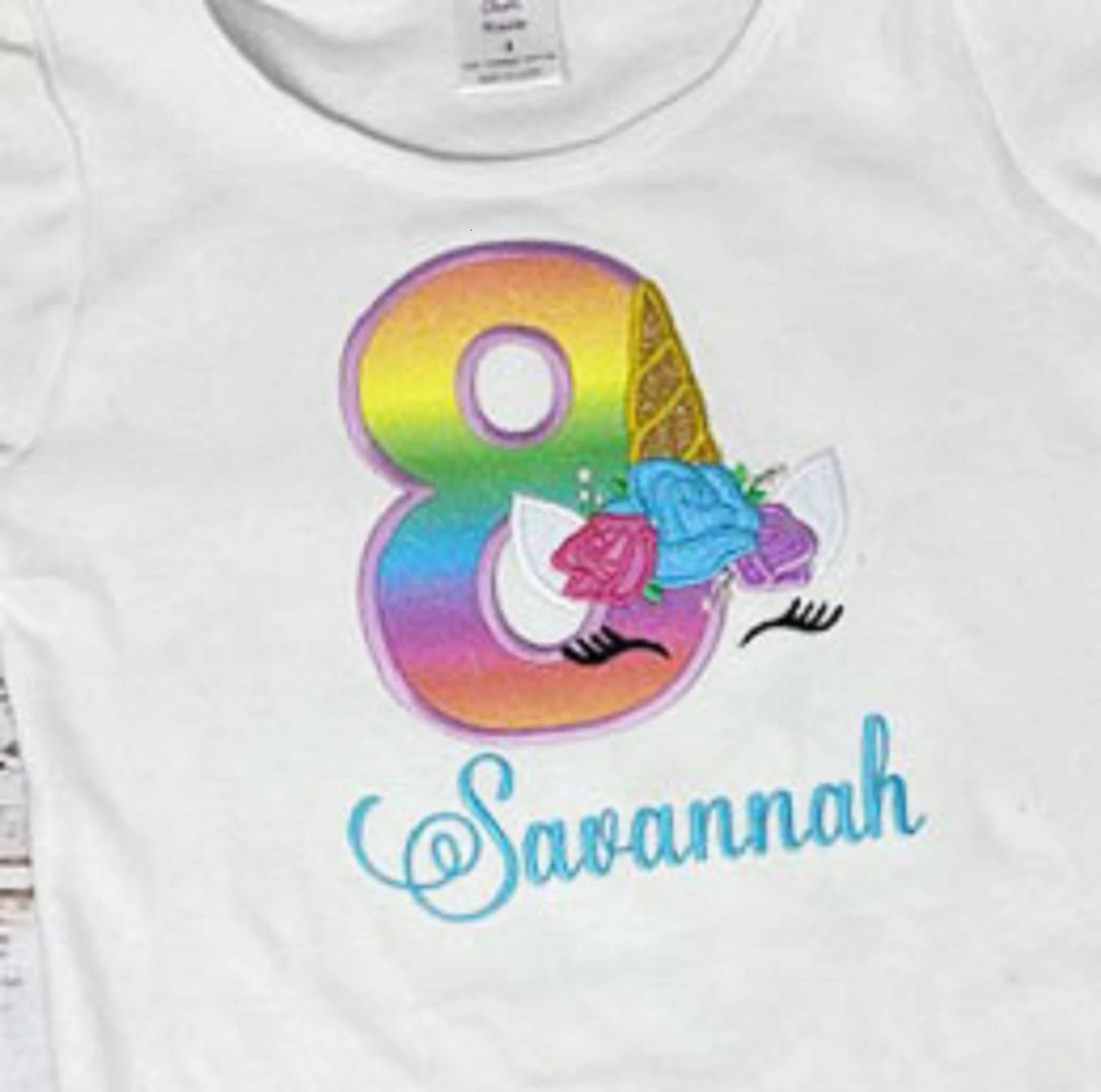Unicorn 8th Birthday Shirt, Rainbow Unicorn Birthday Shirt, Floral Unicorn Birthday Shirt, Any Age Unicorn Embroidered Shirt