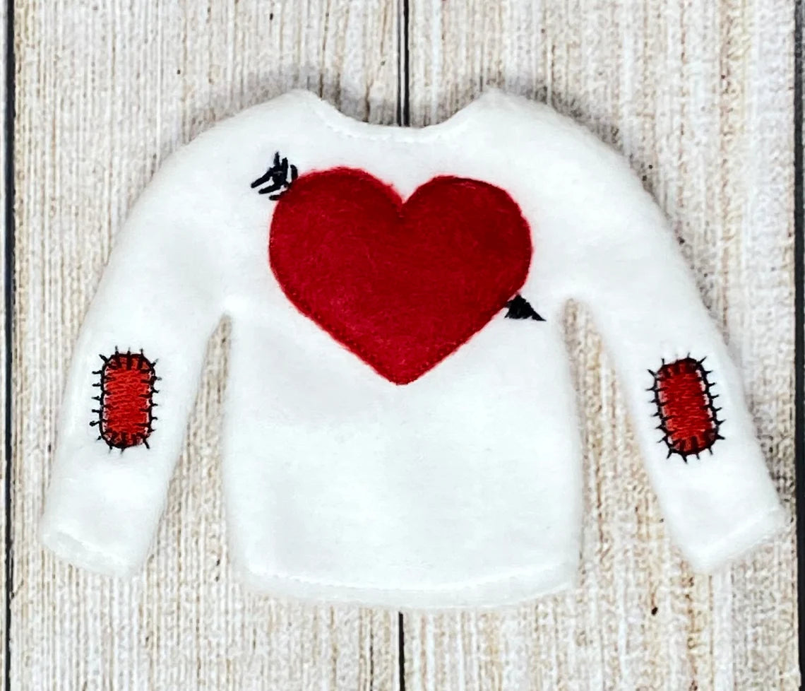 Valentine's Day Elf Doll Sweater, Heart Patch Elf Clothing, Elf Props