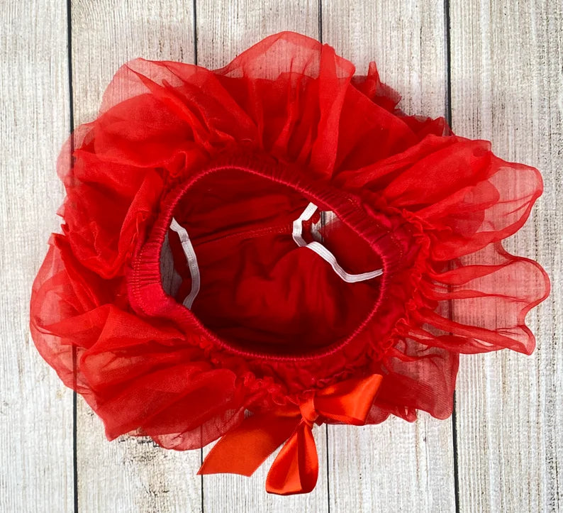 The cutest Valentine's Day Tutu set for your little one! The whole set includes the bodysuit, tutu, and leggings. The tutu is an actual diaper coverup with tulle ruffles sewn onto it so it us super fun for dressing up little outfits!