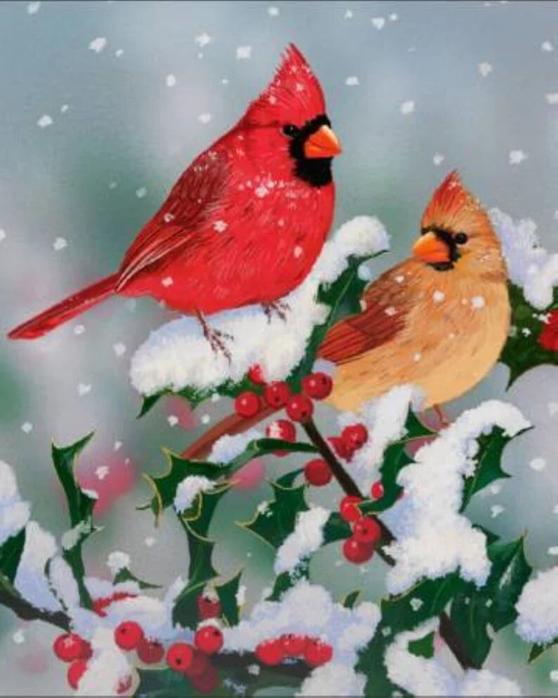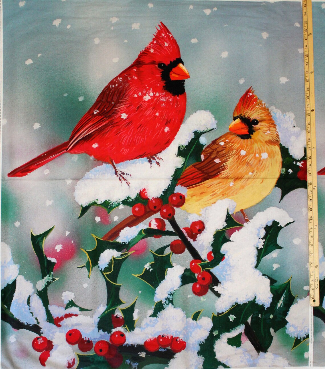 Winter Companions Fabric Panel 36"x44", Cardinal Branch AL-3546 Fabric Panel by David Textiles