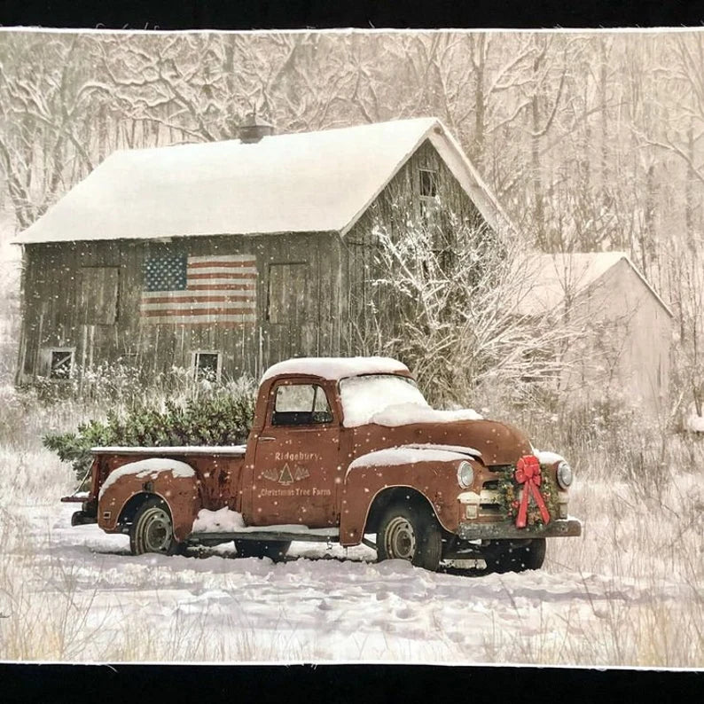 Winter Old Truck Panel 42"x36", Christmas Memories Fabric Panel, Riley Blake
